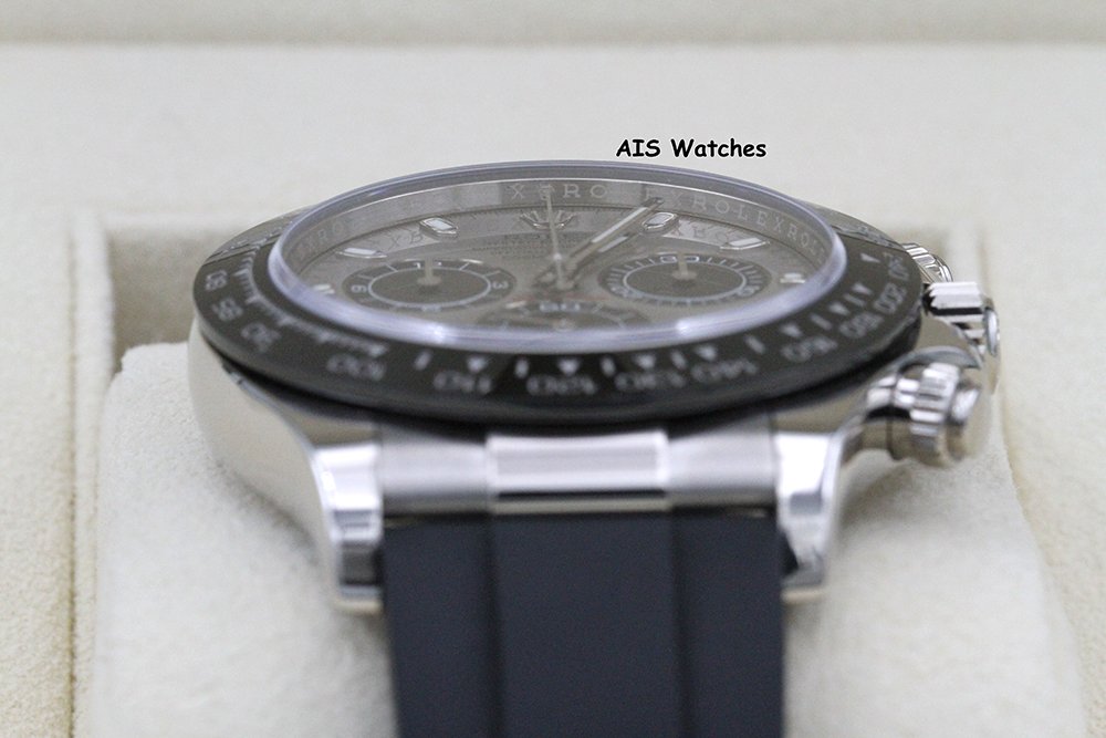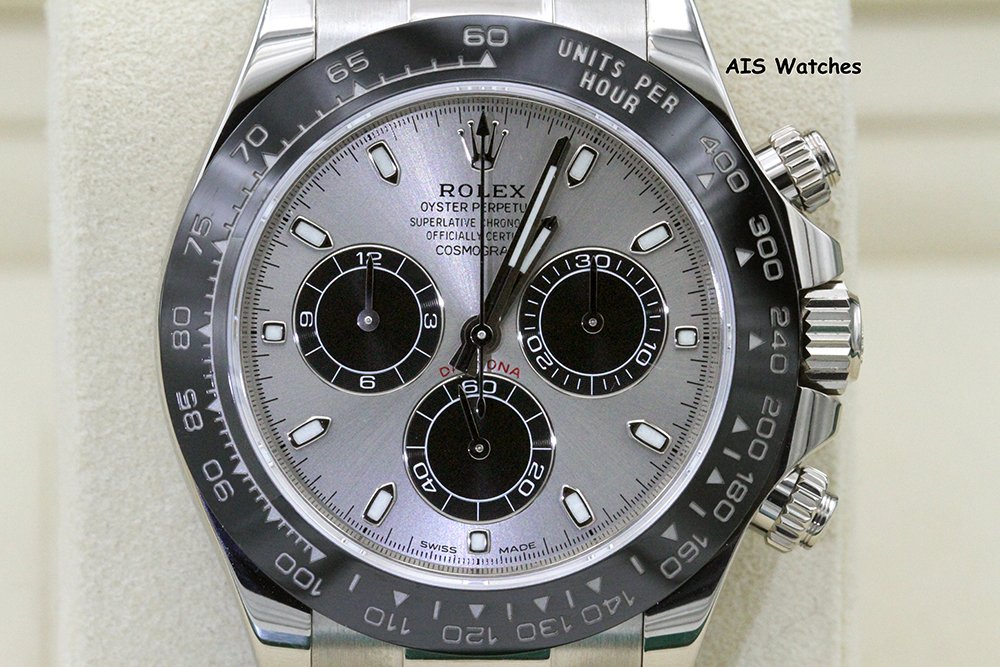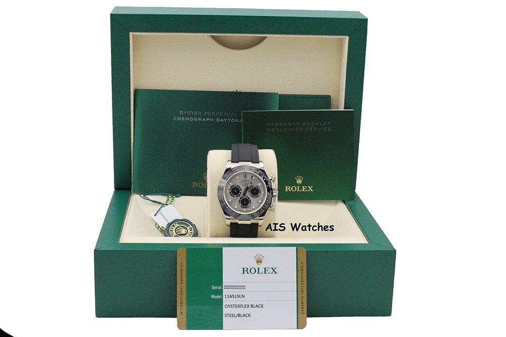 Up for sale is a Rolex 116519 Daytona Ceramic Cosmograph 18K White Gold with Steel Dial on OysterFlex Box & Papers. The timepiece is in excellent condition.