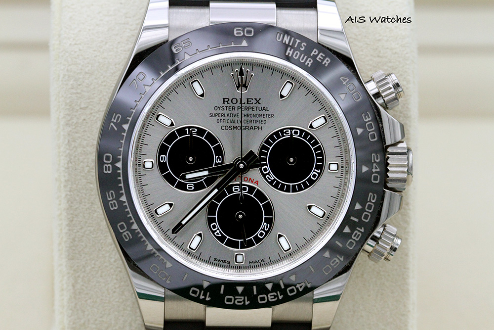 Up for sale is a Rolex 116519 Daytona Ceramic Cosmograph 18K White Gold with Steel Dial on OysterFlex Box & Papers. One owner timepiece is in clean condition.