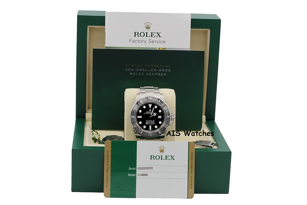 Up for sale is a Discontinued Rolex 116600 SeaDweller SD4K Random Serial Box & Papers. Watch is in excellent condition.