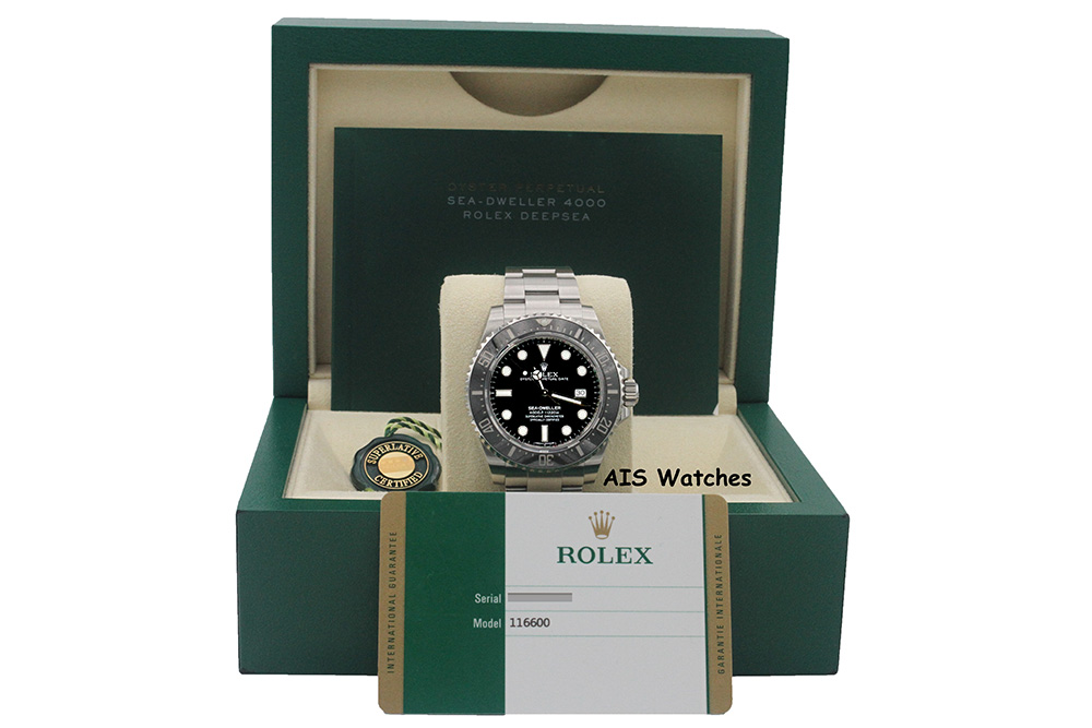 Up for sale is a Discontinued Rolex 116600 SeaDweller SD4K Random Serial Box & Papers. Watch is in excellent condition.