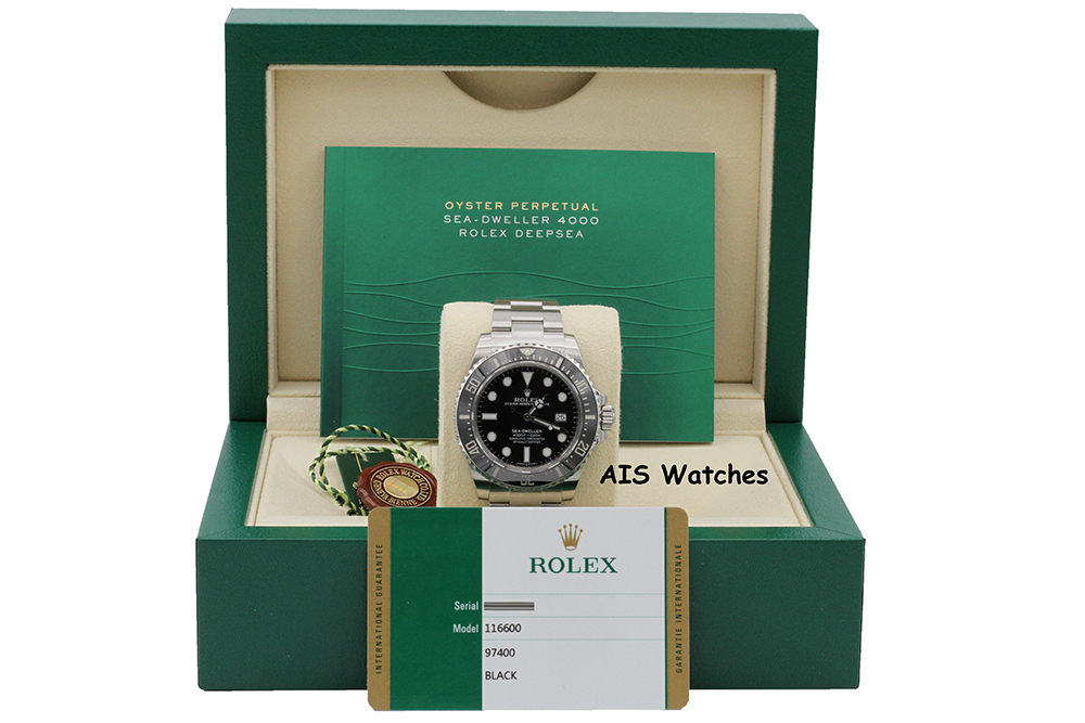Up for sale is a Discontinued Rolex 116600 SeaDweller SD4K Random Serial Box & Papers. Watch is in excellent condition.