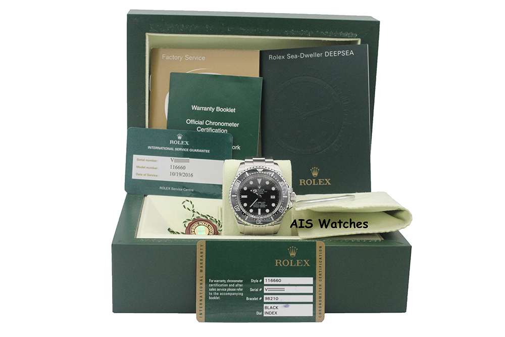 Up for sale is a Discontinued Rolex 116660 Deep Sea SeaDweller DSSD Black Dial V Serial Box & Papers. The timepiece is in excellent condition.