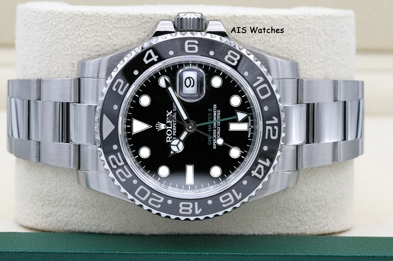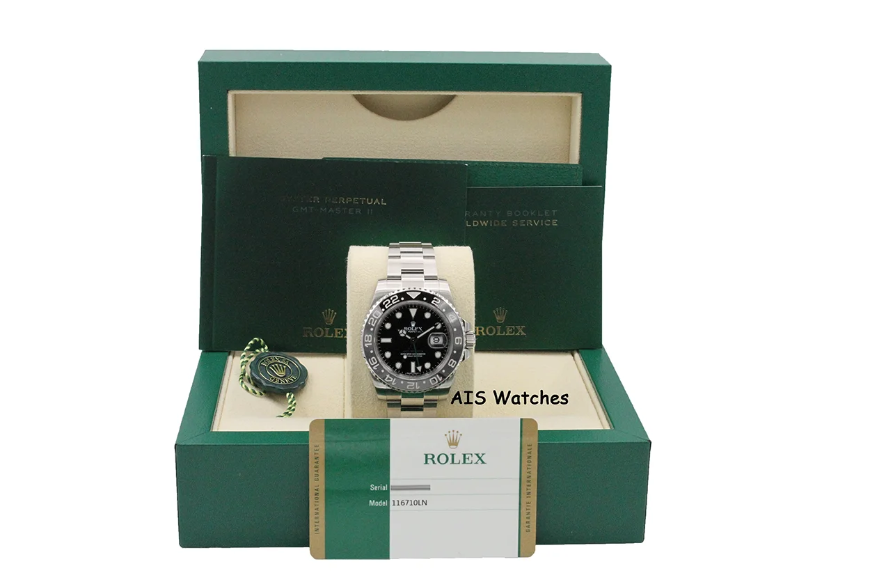 Up for sale is a Discontinued Rolex 116710 LN GMT Master II Black Ceramic Insert Box & Papers. The timepiece is in excellent condition.