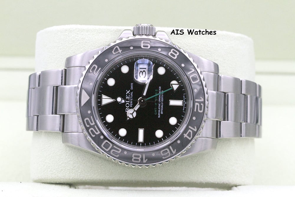 Up for sale is a Discontinued Rolex 116710 LN GMT Master II Black Ceramic Insert M Serial Box & Papers. The timepiece is in excellent condition.