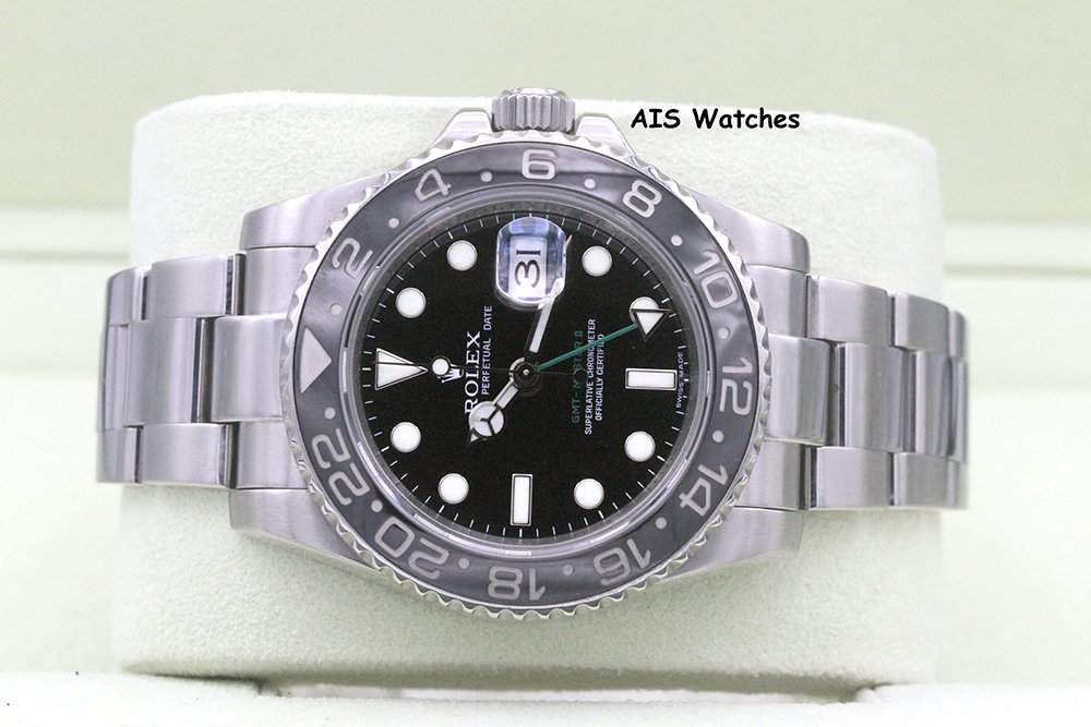 Up for sale is a Discontinued Rolex 116710 LN GMT Master II Black Ceramic Insert M Serial Box & Papers. The timepiece is in excellent condition.