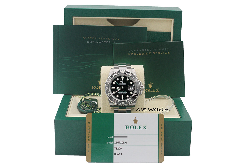 Up for sale is a Discontinued Rolex 116710LN GMT Master II Black Ceramic Insert Random Serial Box & Papers. The timepiece is in good condition.