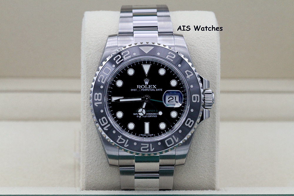 Up for sale is a Discontinued Rolex 116710 LN GMT Master II Black Ceramic Insert Random Serial Box & Papers. The timepiece is in excellent condition.
