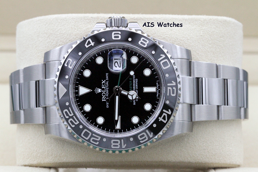 Up for sale is a Discontinued Rolex 116710 LN GMT Master II Black Ceramic Insert Random Serial Box & Papers. The timepiece is in excellent condition.