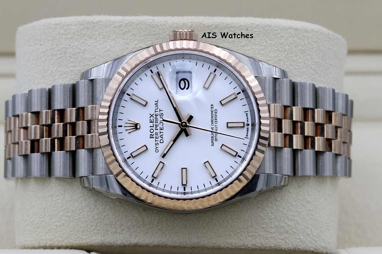 Rolex 126231 Datejust 36MM 18K RG / SS White Stick Dial Jubilee B&P