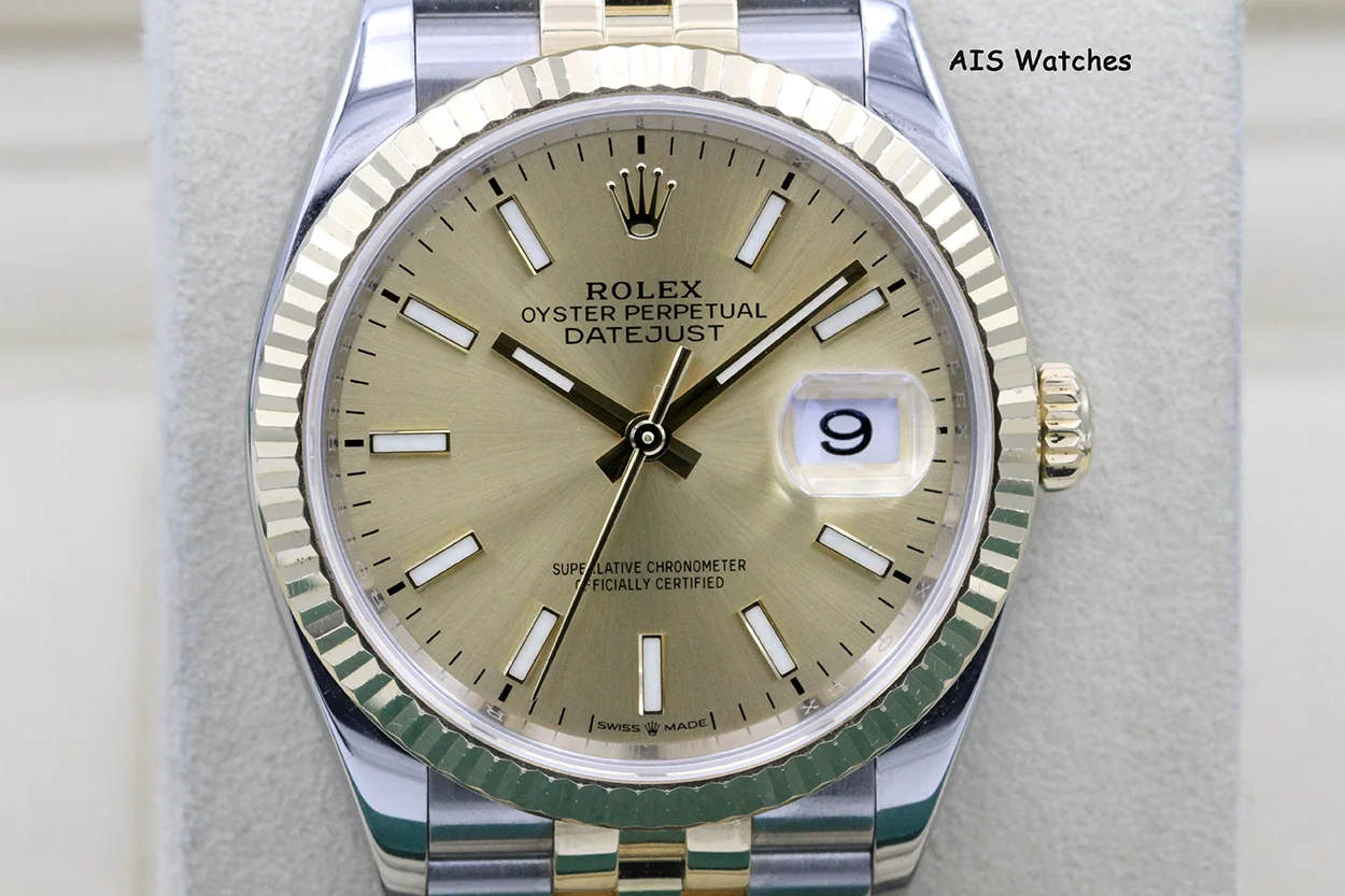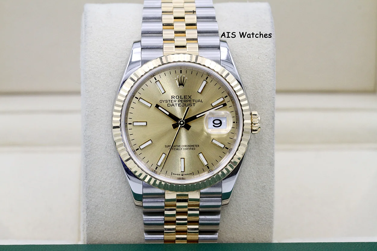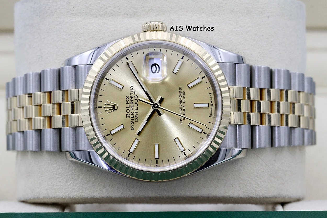 ** Rolex 126233 DateJust 36MM 18K YG/SS Champagne Stick Dial Jubilee Bracelet