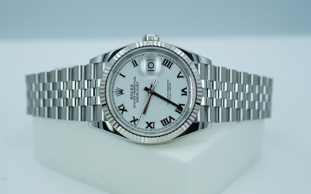 An Excellent Condition & Very Beautiful 2024 36mm Rolex 126234 Datejust Stainless Steel with 18K White Gold Fluted Bezel & White Roman Numerals Dial. Its on Jubilee Bracelet. New Rolex 3235 Movement. Purchased from Rolex Authorized Dealer in 03.2024. Watch Running Perfect with Non Issues. Full Links. Full Set & Under 5 Years Factory Warranty.