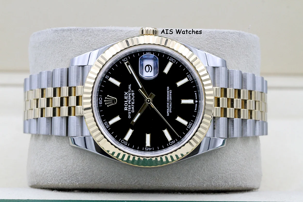 Up for sale is a Rolex 126333 DateJust 41MM 18K YG/SS Black Stick Dial Jubilee Bracelet Box & Papers. The timepiece is in excellent condition.