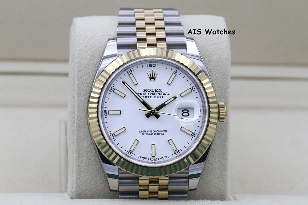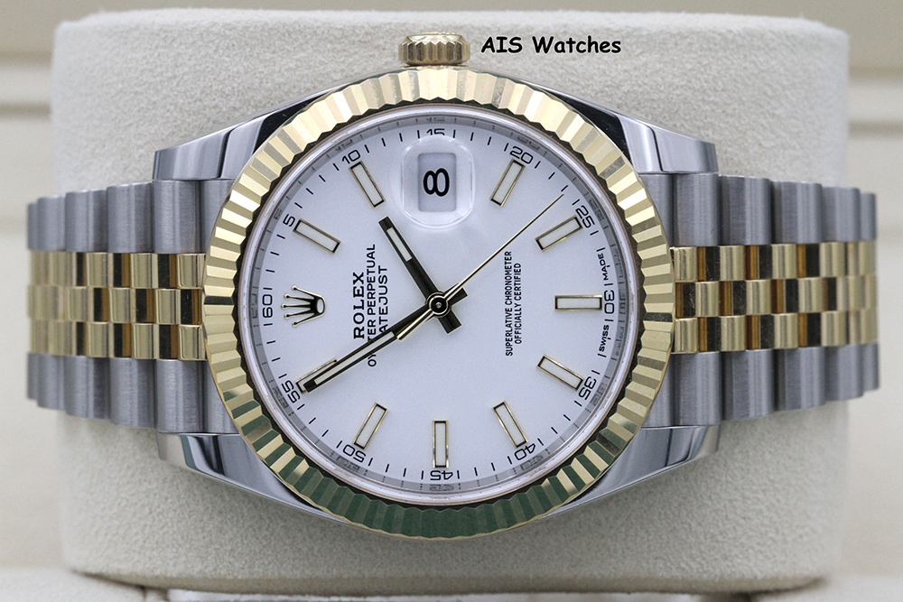 Up for sale is a Rolex 126333 DateJust 41MM 18K YG / SS White Stick Dial Jubilee Bracelet Box & Papers. The timepiece is in excellent condition.