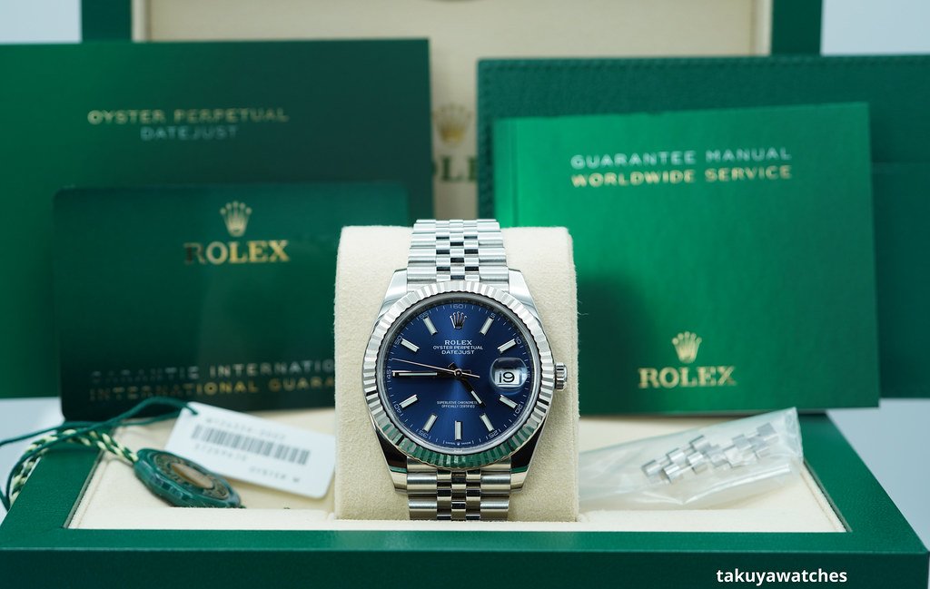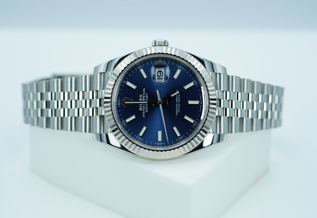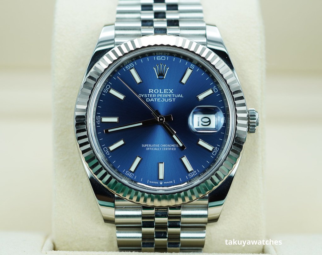 An Excellent Condition & Very Beautiful 2021 41mm Rolex 126334 Datejust 41 Stainless Steel with 18K White Gold Fluted Bezel, Blue Index Dial. It’s on Jubilee Bracelet. Purchased from Rolex Authorized Dealer in 12.2021. Watch Running Perfect with Non Issues. Full Links & Full Set. Under 5 Years Factory Warranty.