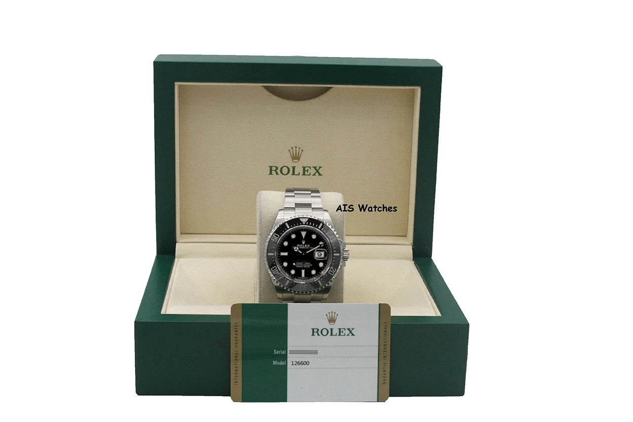 Up for sale is a Rolex 126600 SD43 RED SEA-DWELLER 43MM MK1 Dial 50th Anniversary Box & Papers. The timepiece is in excellent condition.