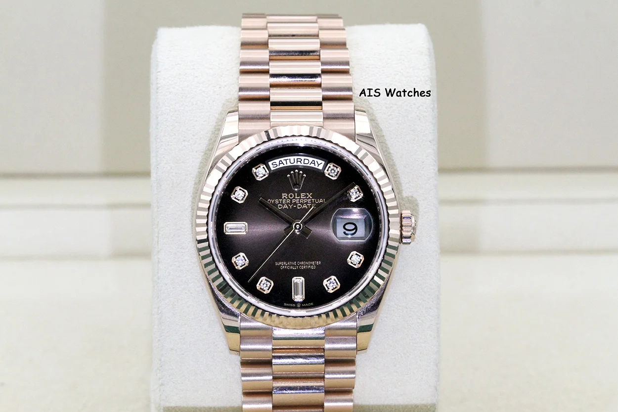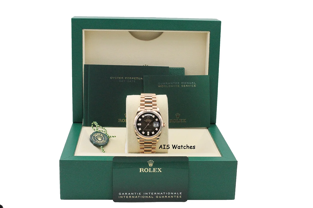** Rolex 128235 DayDate 36MM DD36 EverRose Gold Brown Ombré-Diamond Dial Box & Paper