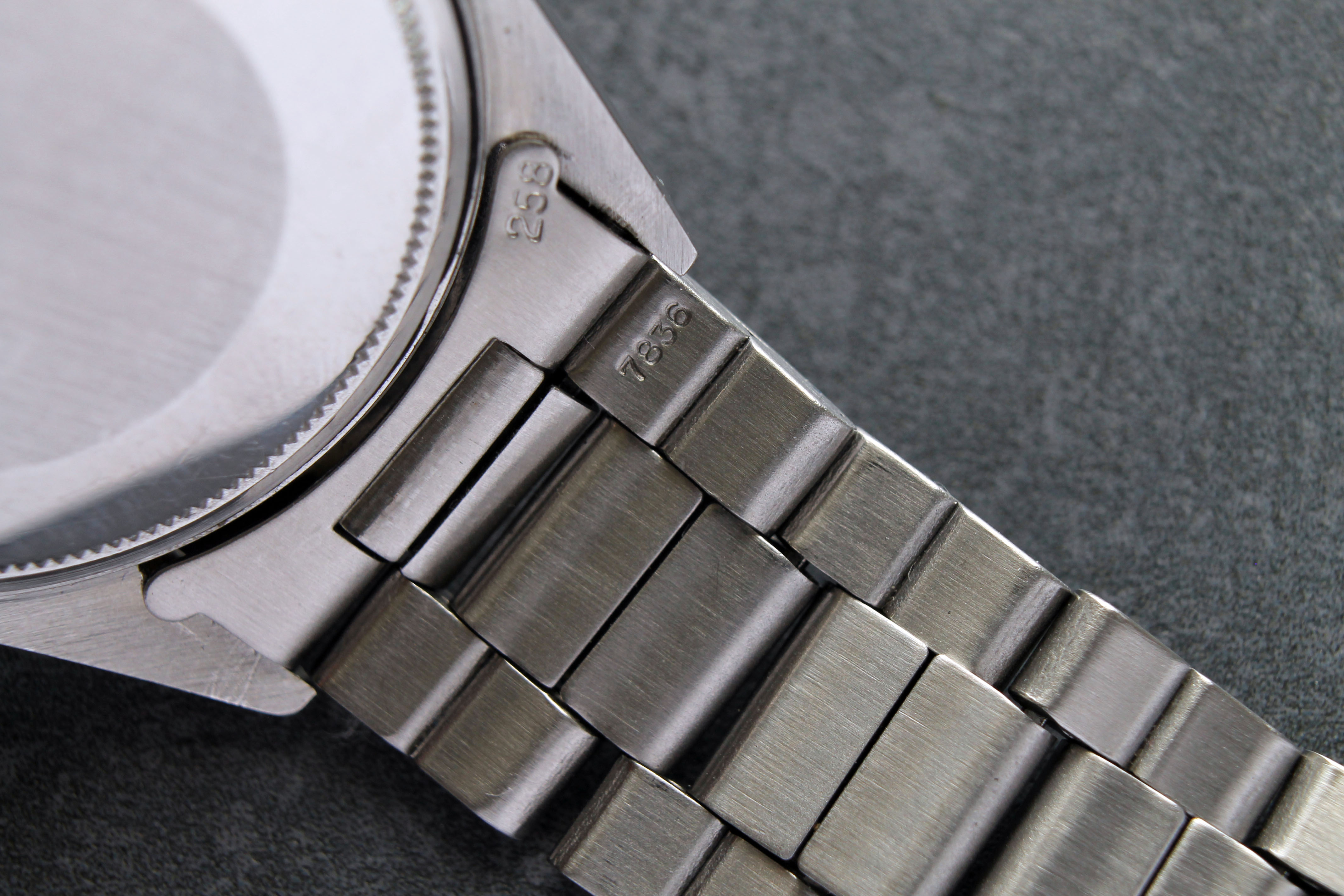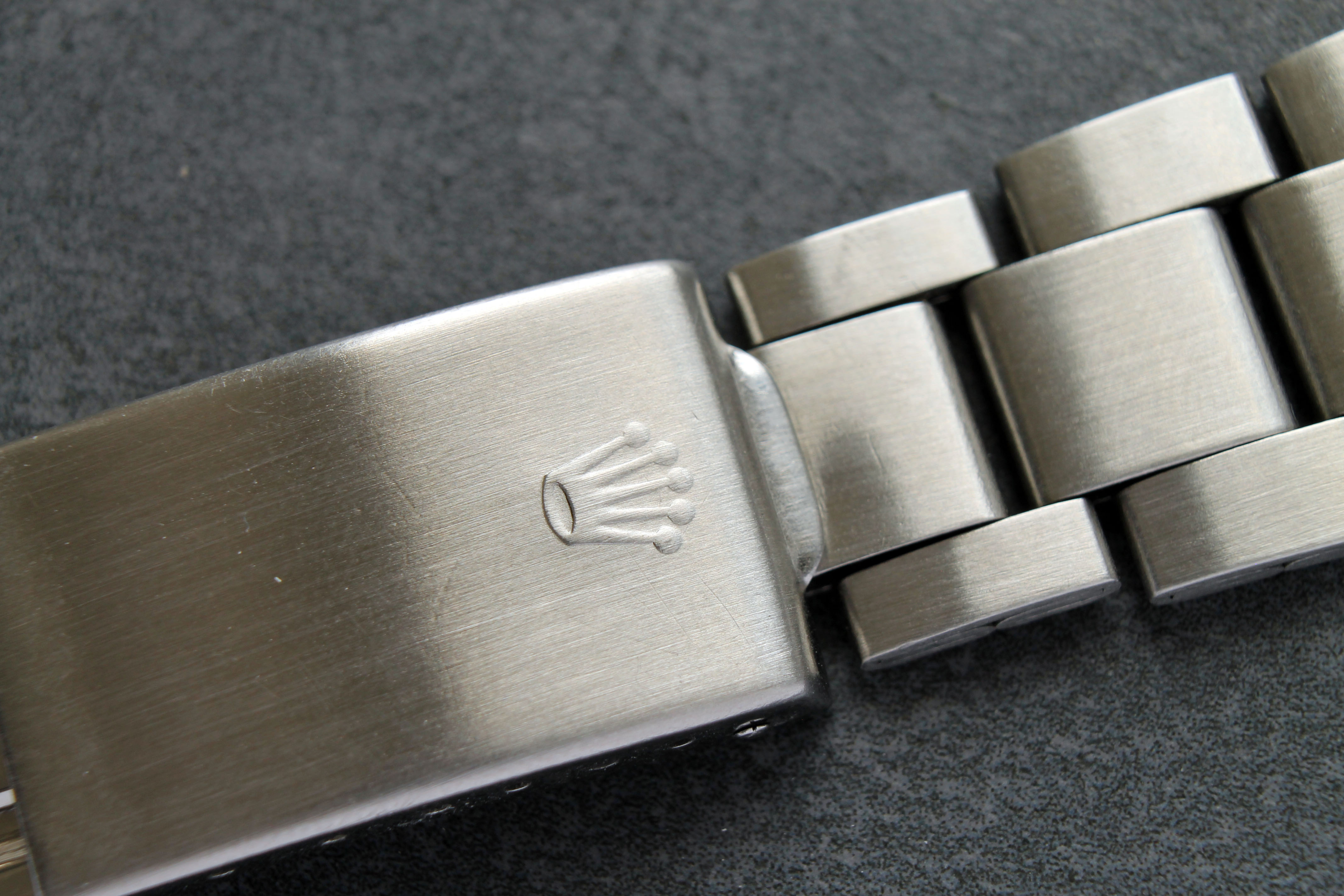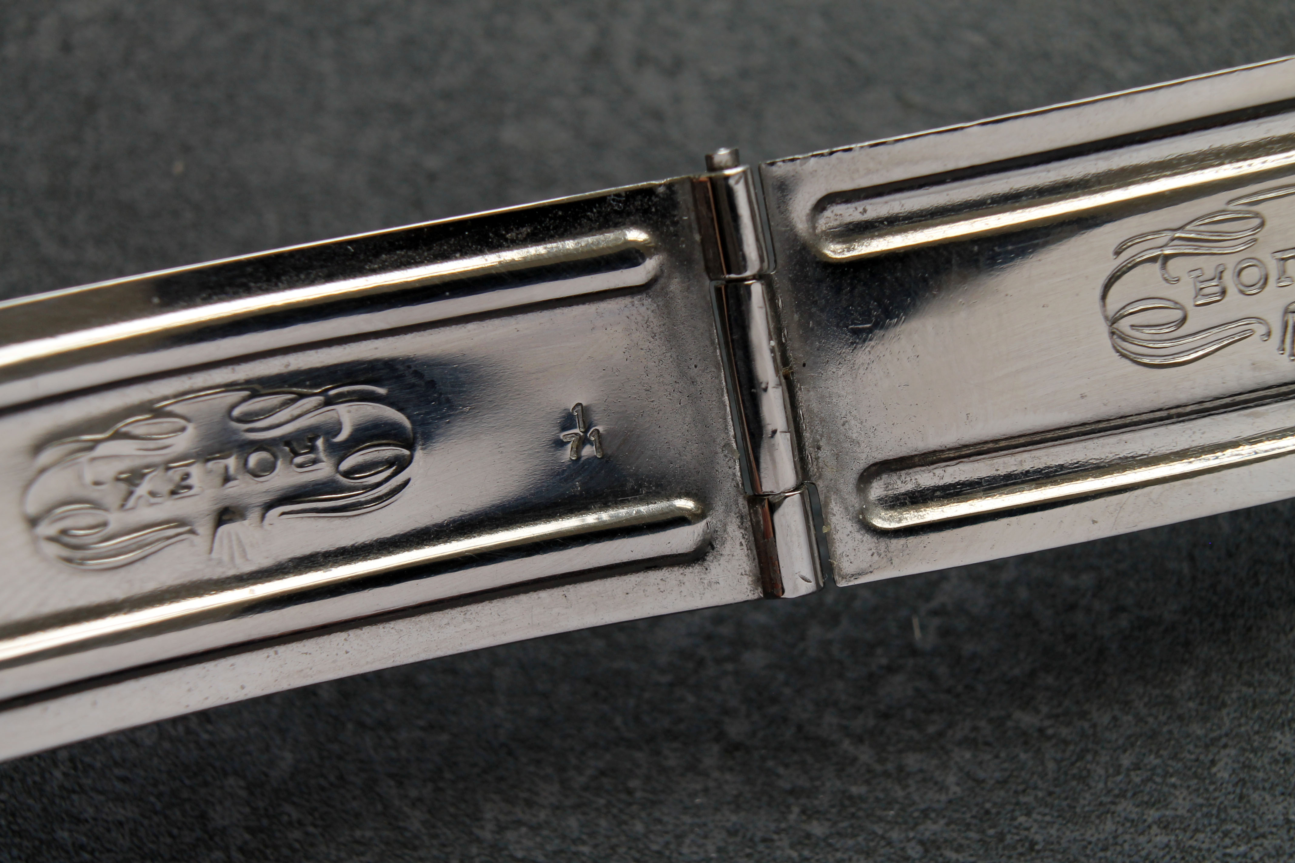 Bracelet: Folded oyster (7836 with 258 endlinks) clasp code 71 in good condition. Picture shows maximum stretch.