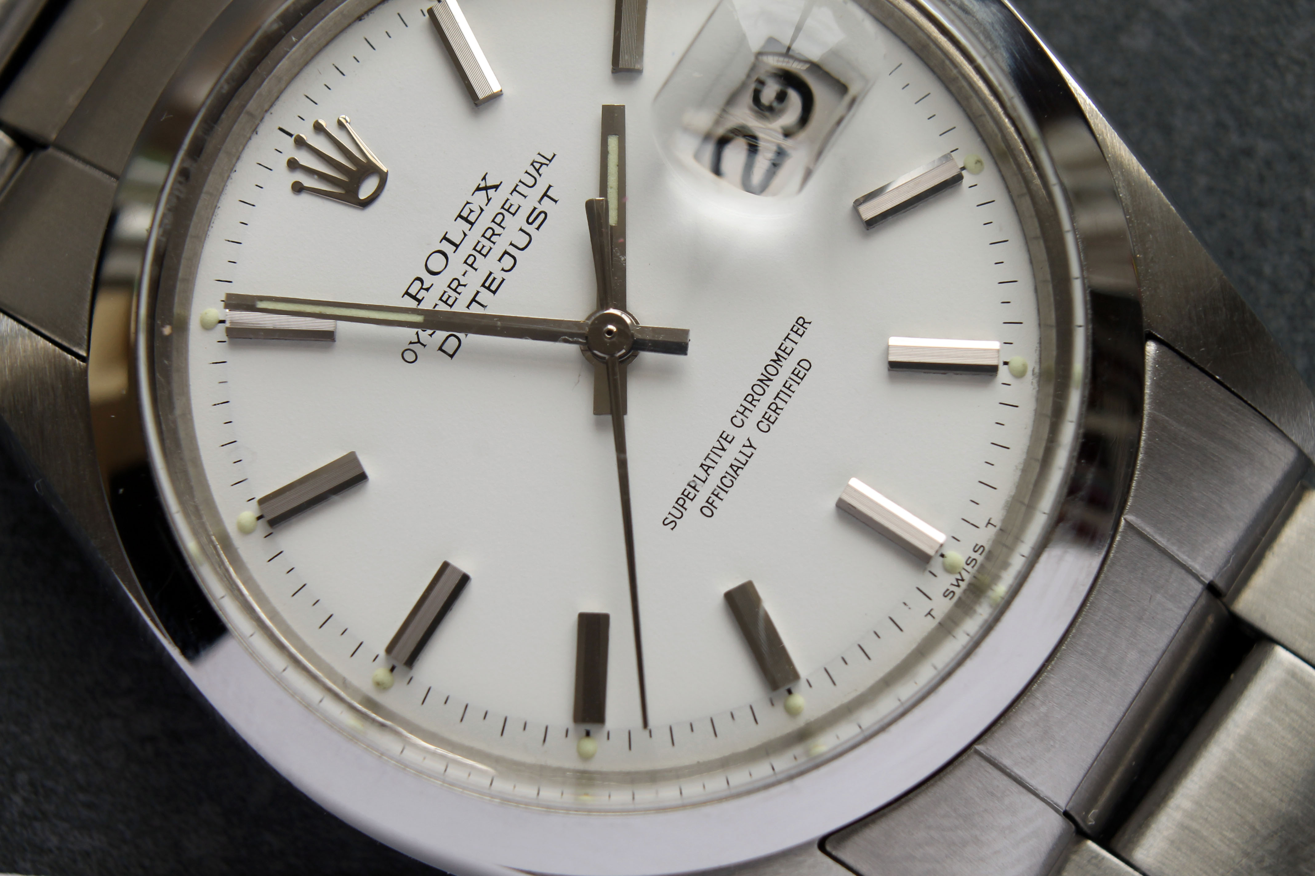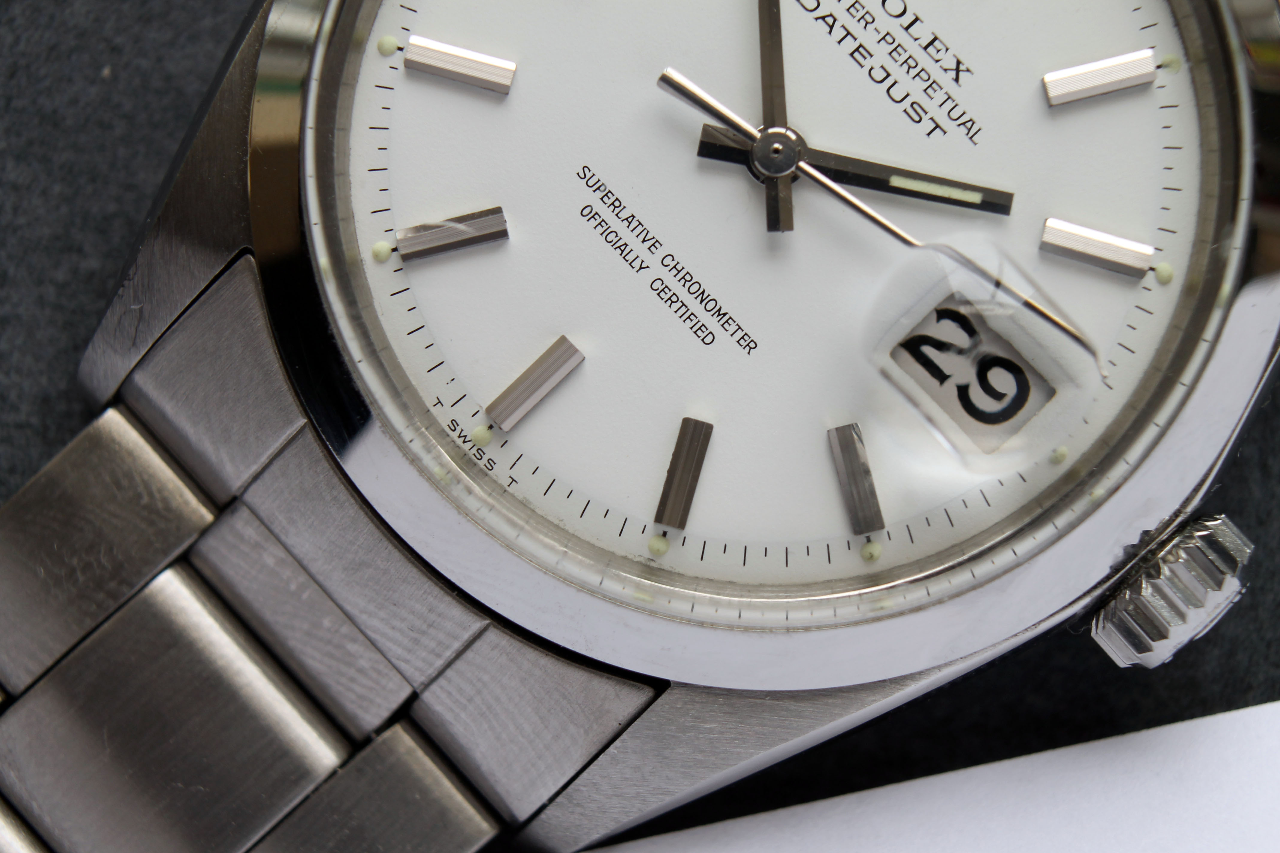 Dial: Very nice white dial with beautiful patina on markers. White dialed Datejusts are quite rare, especially in this condition.