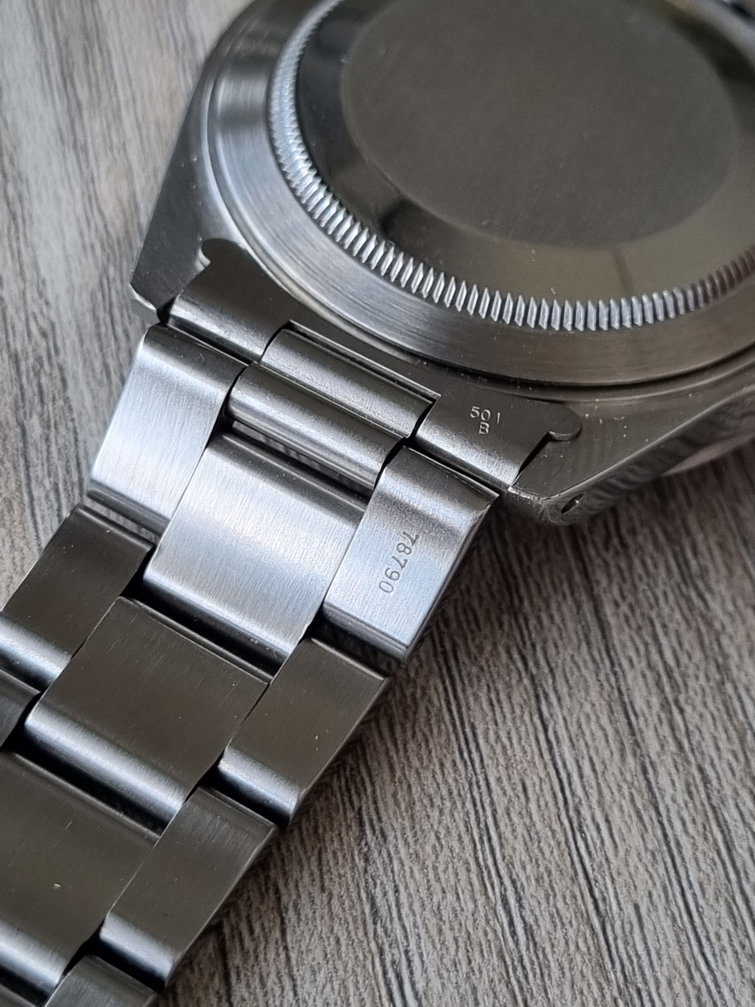 The bracelet 78790 has end links 501B and the clasp marked X1. The bracelet is not so tight as a new watch. It has signs of the time.