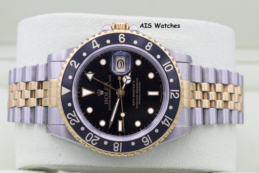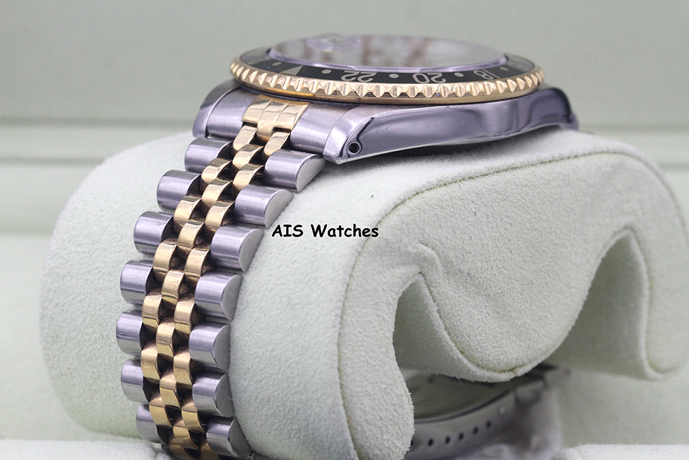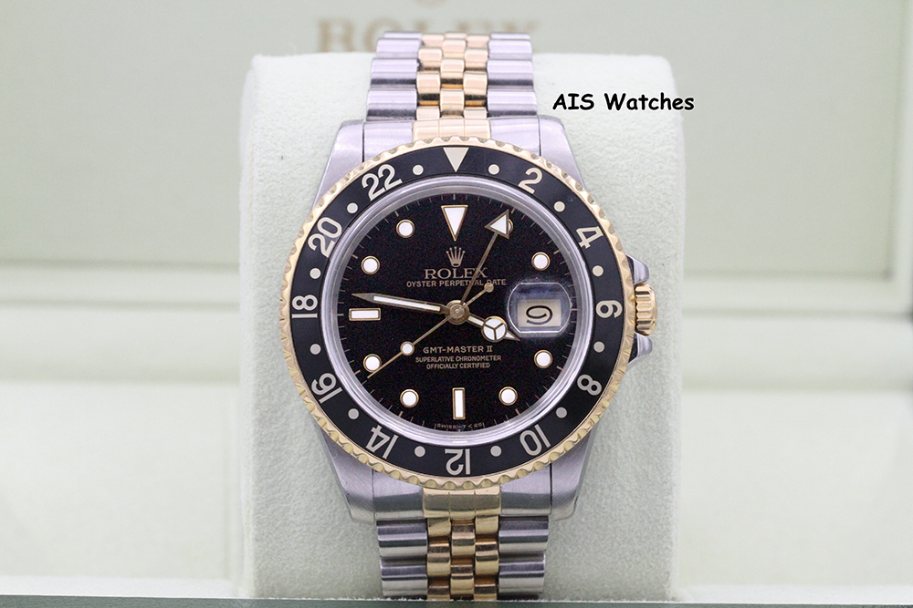 Up for sale is a Rolex 16713 GMT Master II Black Dial 18K/SS Jubilee Bracelet R Serial Box & Papers - Serviced 11/2017. The timepiece is in good condition for its age.