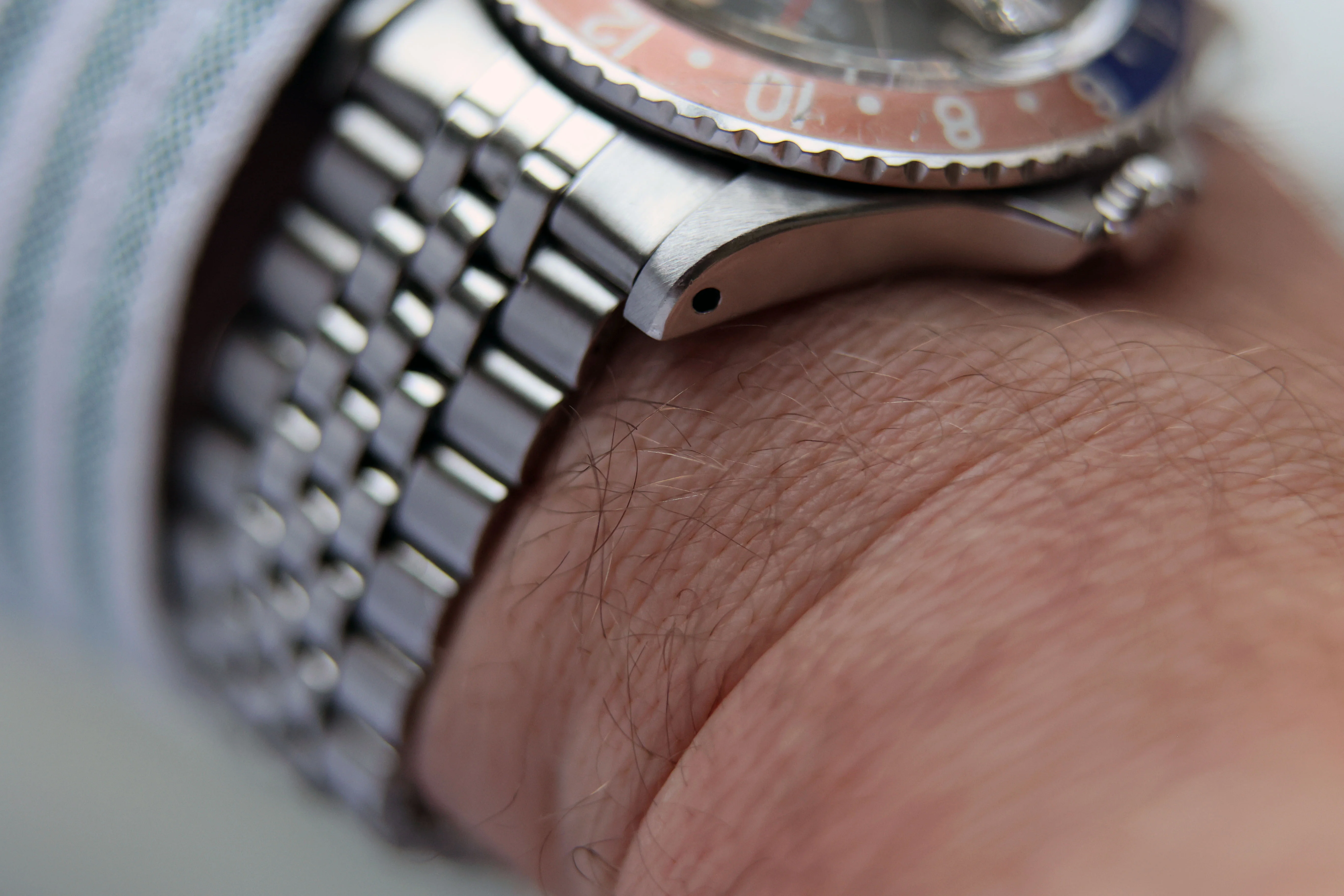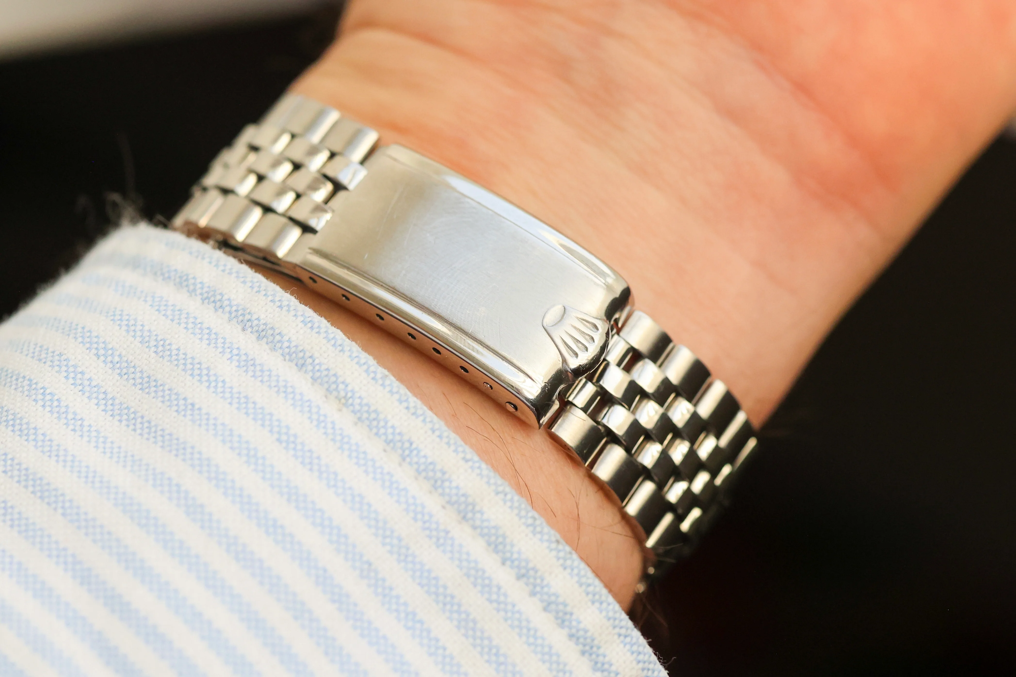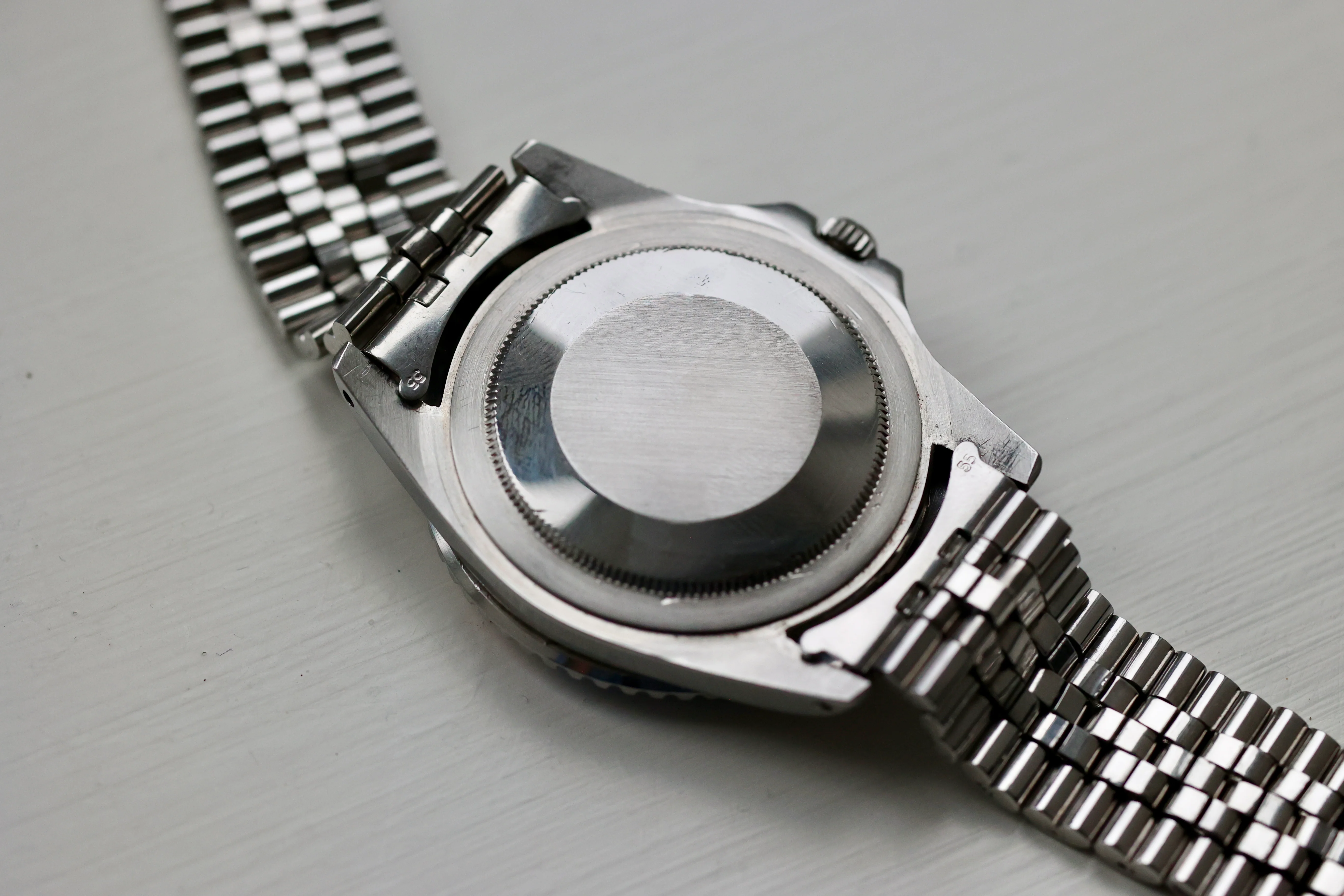 Later (circa 1970) folded-link reference 6251H Jubilee bracelet. The accompanying photo shows maximum stretch.An excellent vintage 1675 Long E overall, combining a strong case, appealing patina, correct period insert, and recent professional service by Tempus.