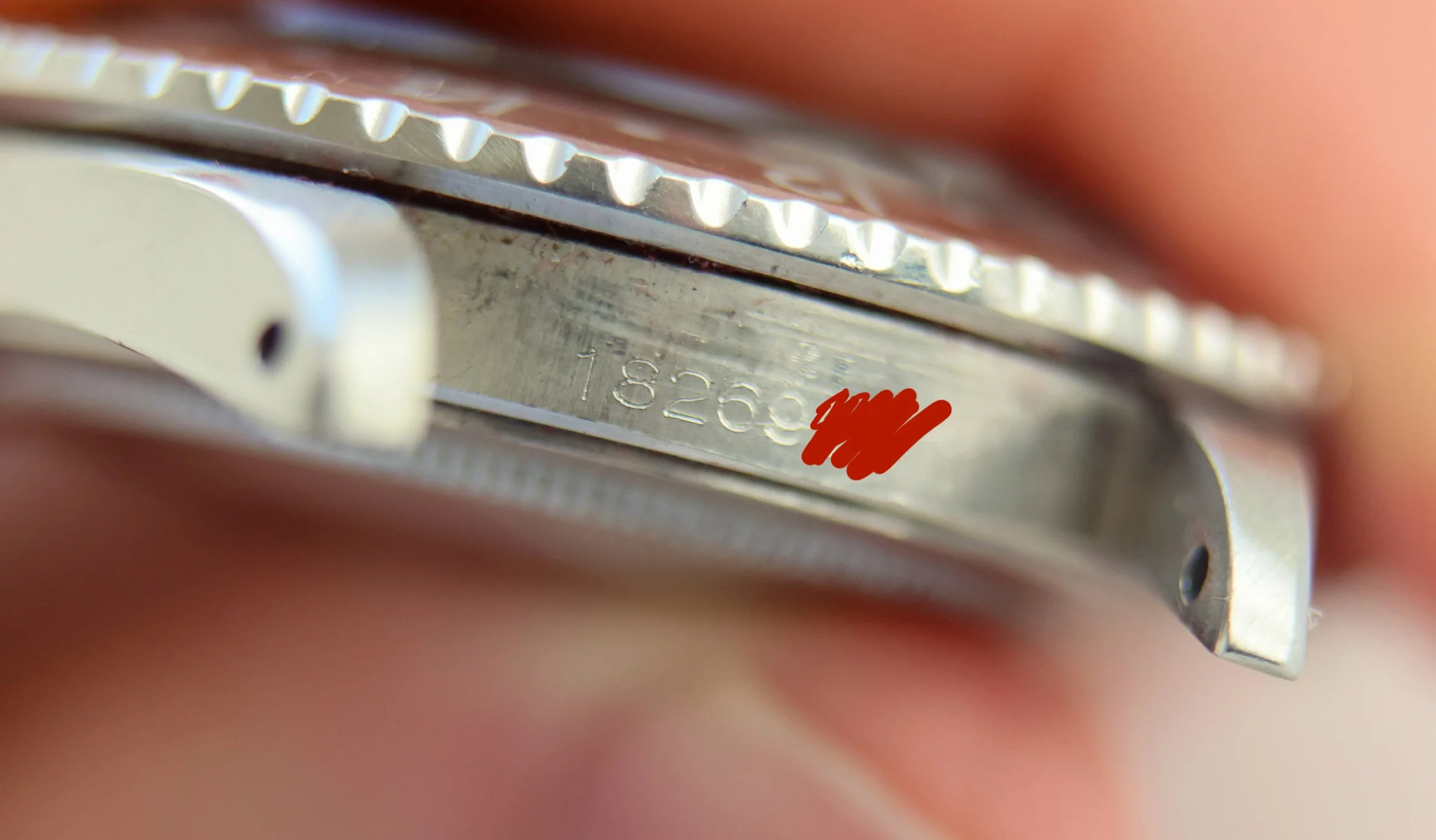 Original “Long E” dial with outstanding, even patina. At the time of purchase, the lume on the 7 o’clock marker and the hands showed some inconsistency, these were professionally color-matched by Horoluma on behalf of Tempus to match perfectly with the other tritium plots. The patina displays particularly well in natural sunlight as can be seen on picture 4.Case