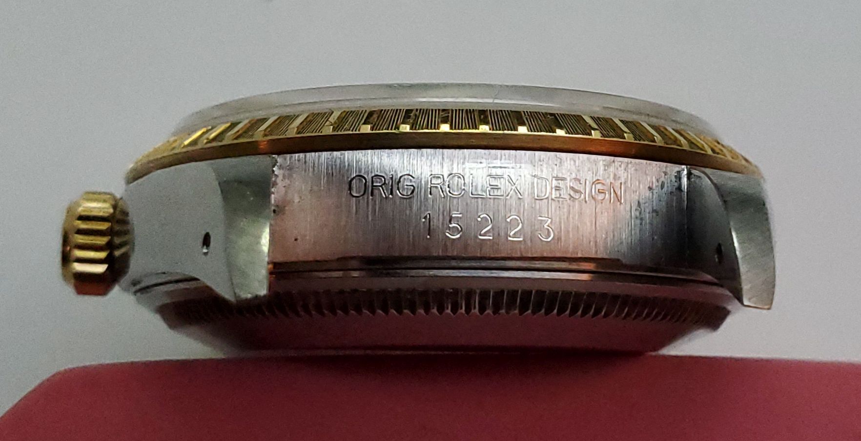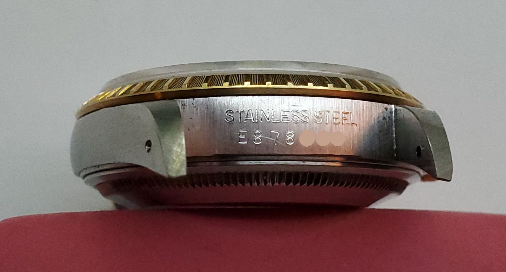 Bezel: 18K yellow gold engine turned. I believe to be original and unpolished.