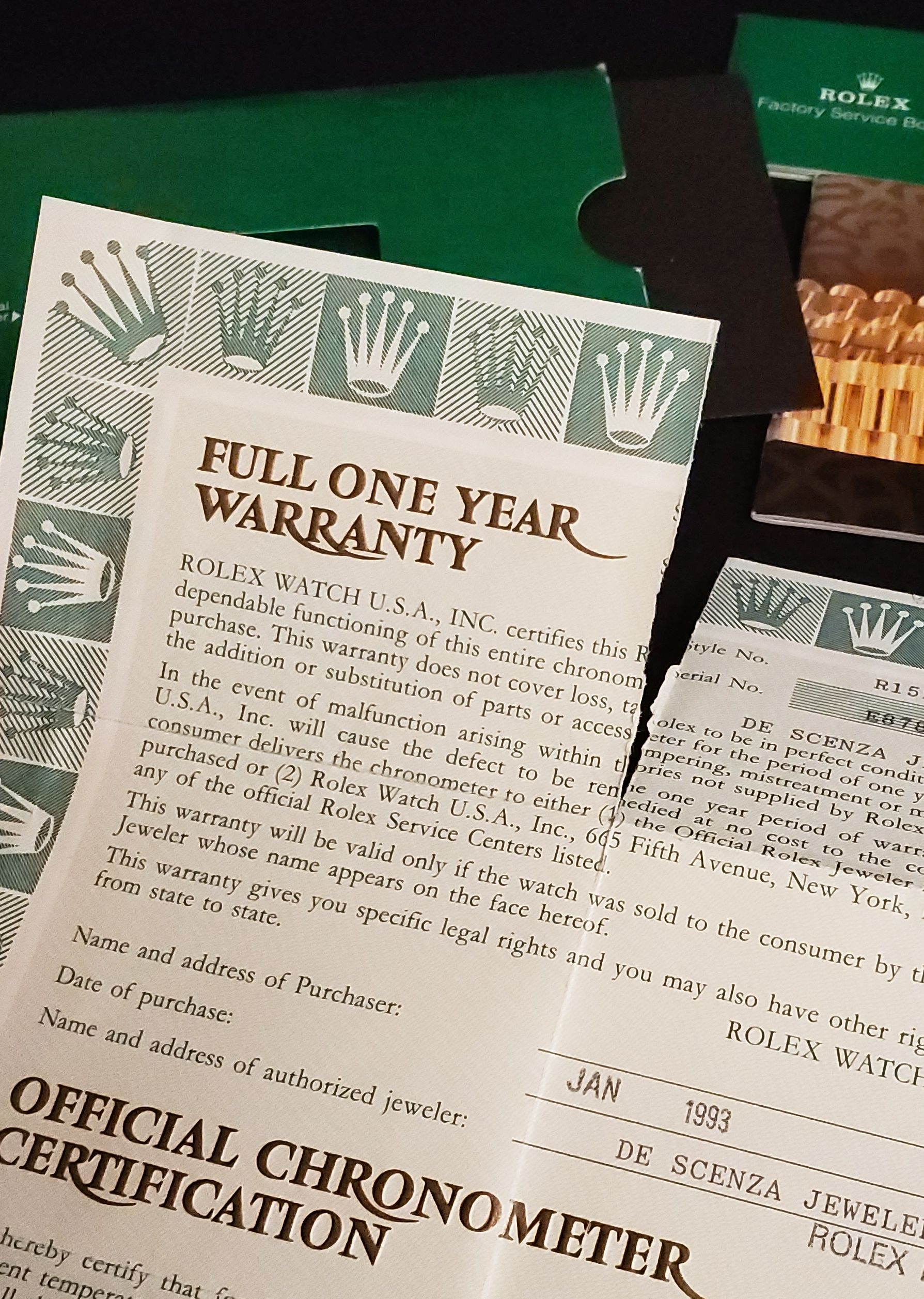 Provenance: Previous owner is a good friend who purchased it pre-owned in the late 90’s and kept it stored and unworn. I acquired it 1 year ago and wore it a handful of times. Neither he nor I had it serviced, hence why I’m recommending a service for regular wear.