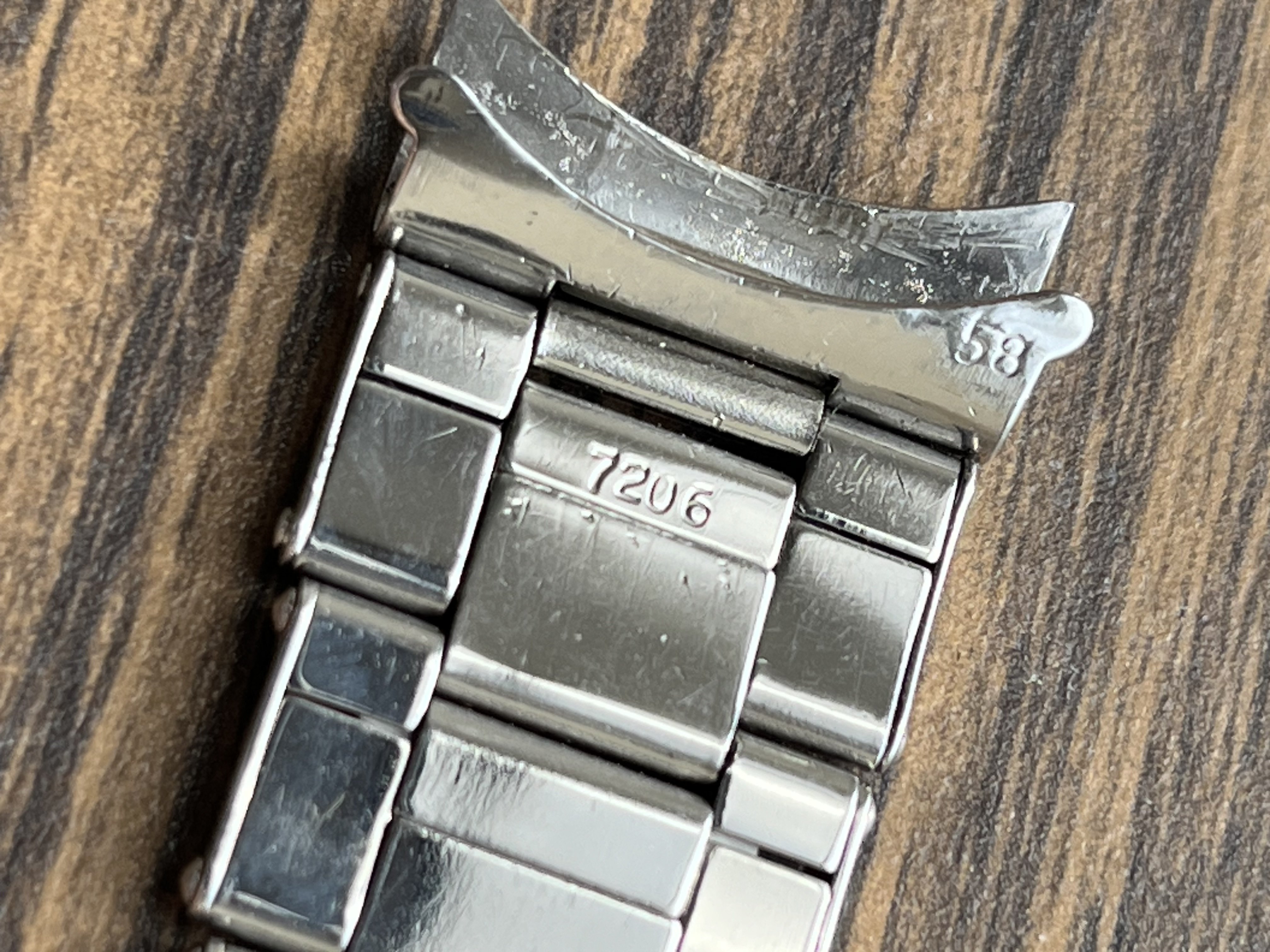 ·Hello up for sale is a circa 1969 Rolex Swiss-made 7206 rivet bracelet restored by Rolliworks. Date code on clasp is 3 69. 20mm Endlinks are 58, for GMT 1675, Explorer 1016, etc.