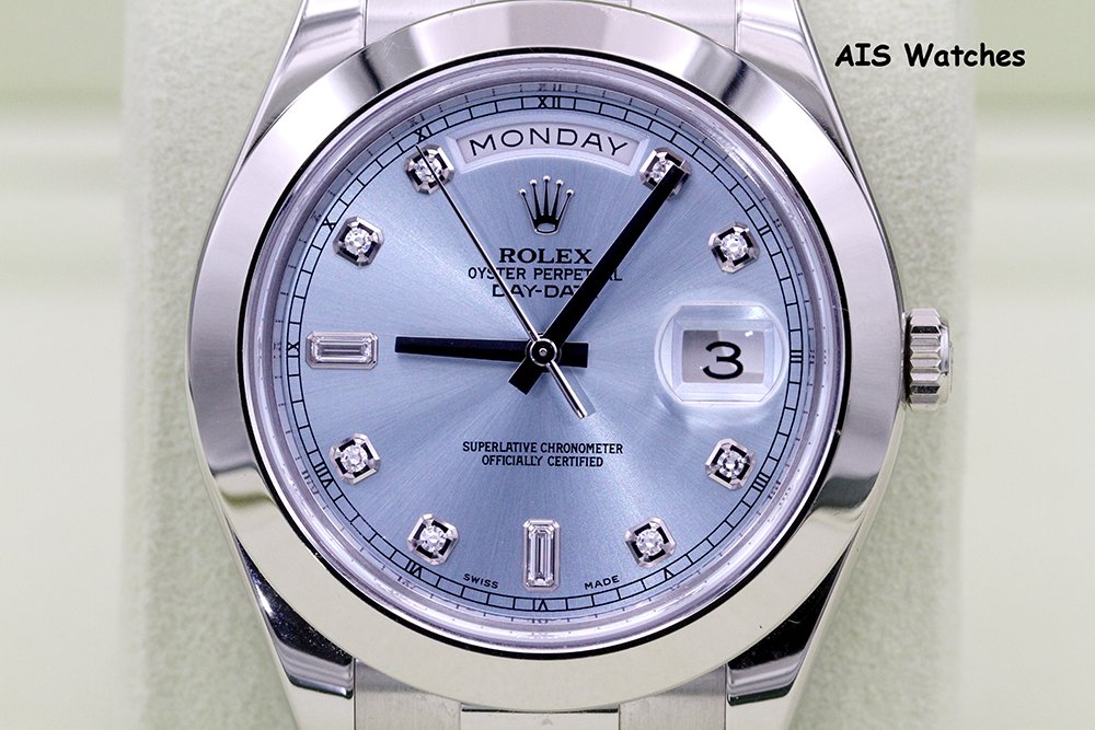 ** Rolex 218206 Platinum DayDate II 41MM DD2 Glacier Ice Blue Diamond Dial