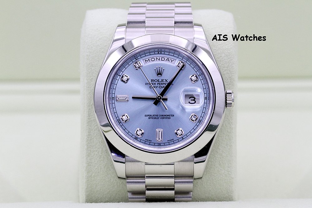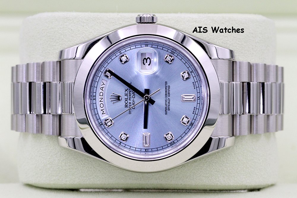 ** Rolex 218206 Platinum DayDate II 41MM DD2 Glacier Ice Blue Diamond Dial