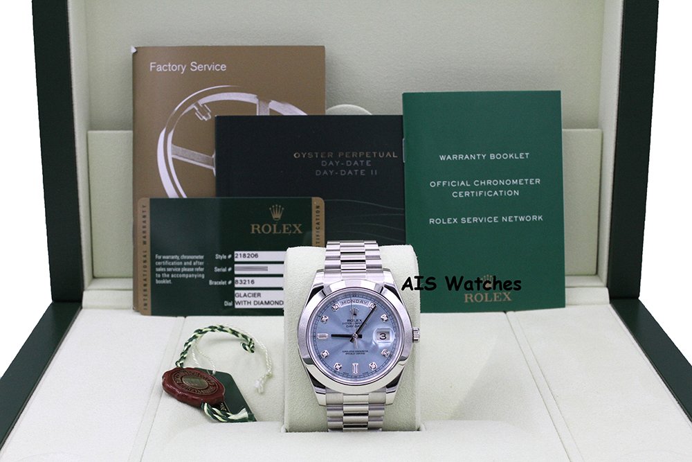 ** Rolex 218206 Platinum DayDate II 41MM DD2 Glacier Ice Blue Diamond Dial