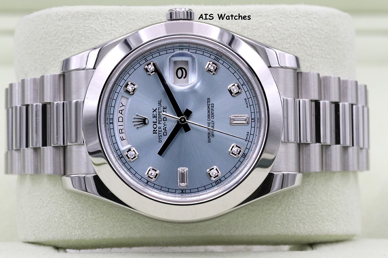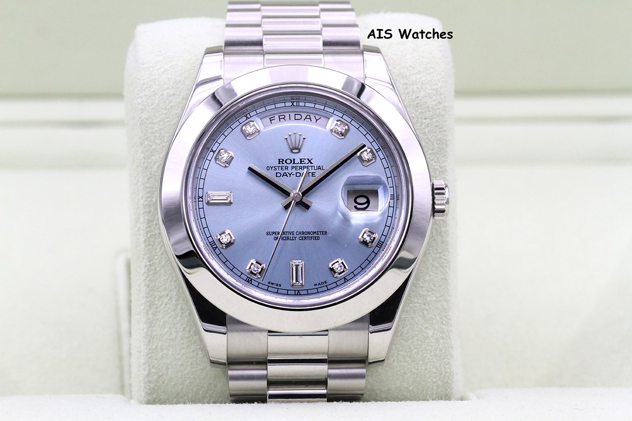 ** Rolex 218206 Platinum DayDate II 41MM DD2 Glacier Ice Blue Diamond Dial