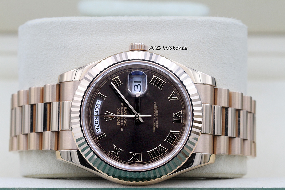 ** Rolex 218235 DayDate II 41MM DD2 Rose Gold Chocolate Roman Dial