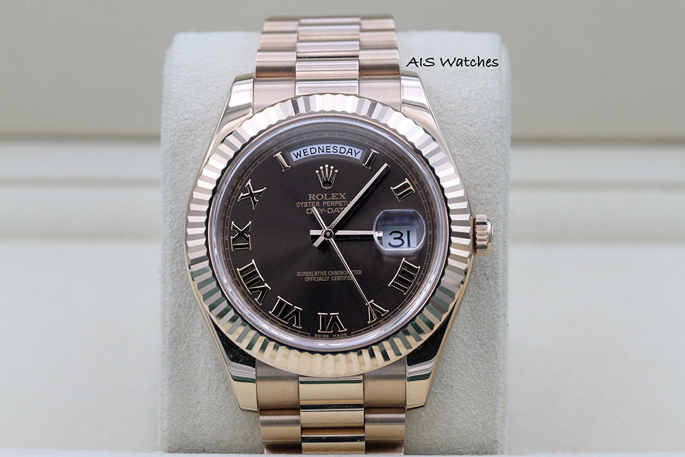 ** Rolex 218235 DayDate II 41MM DD2 Rose Gold Chocolate Roman Dial