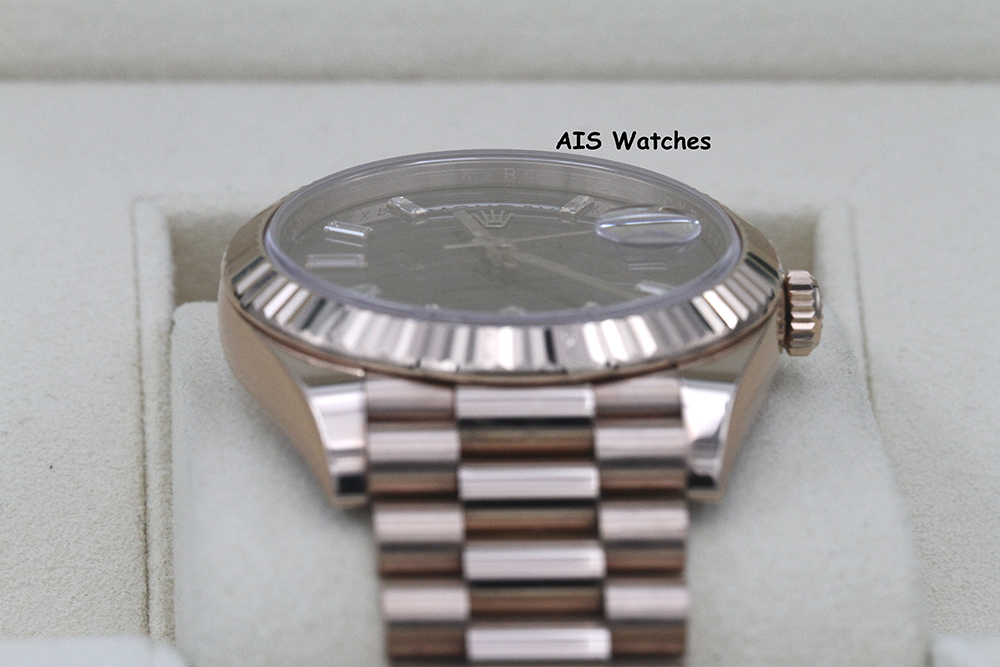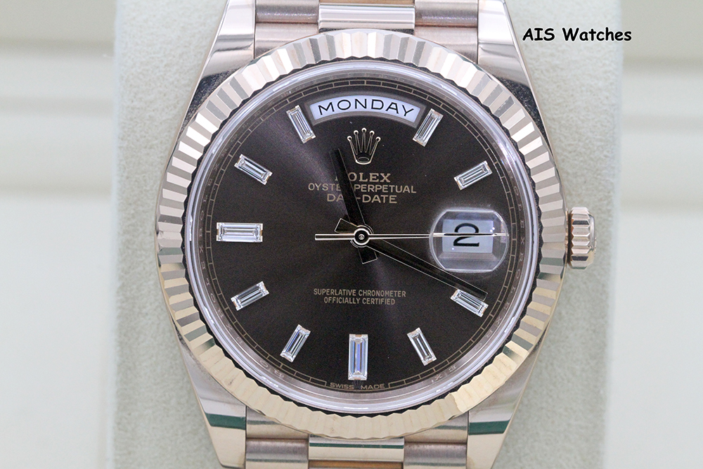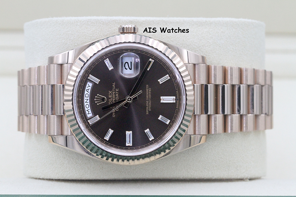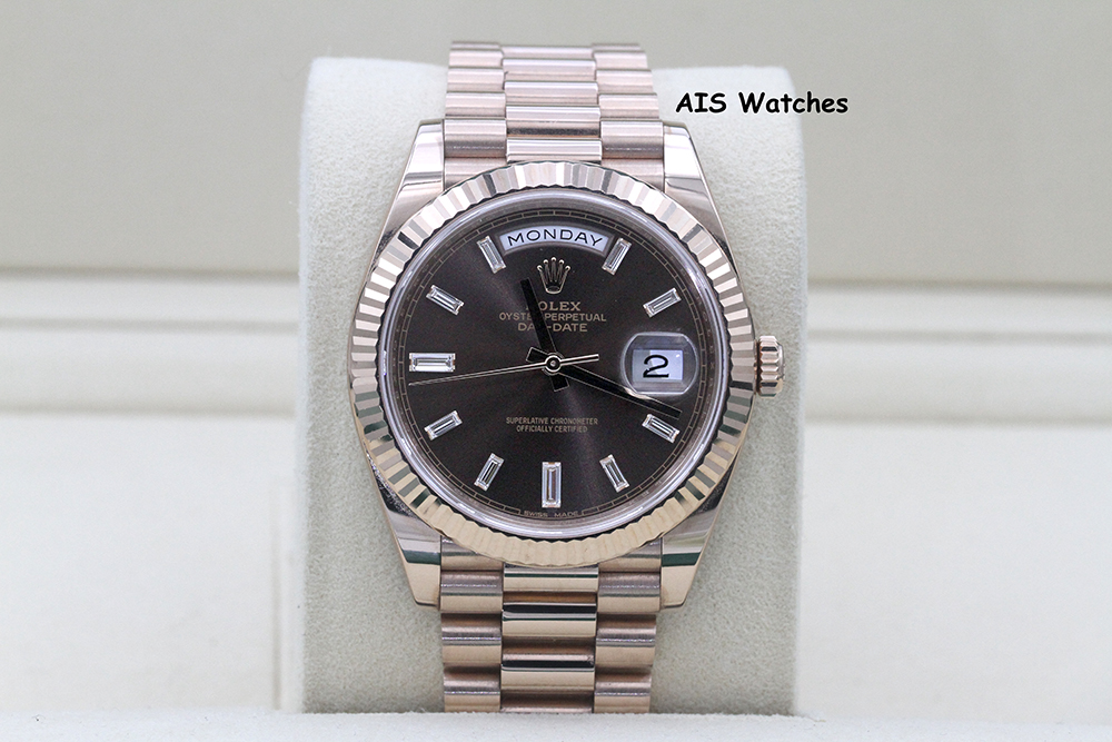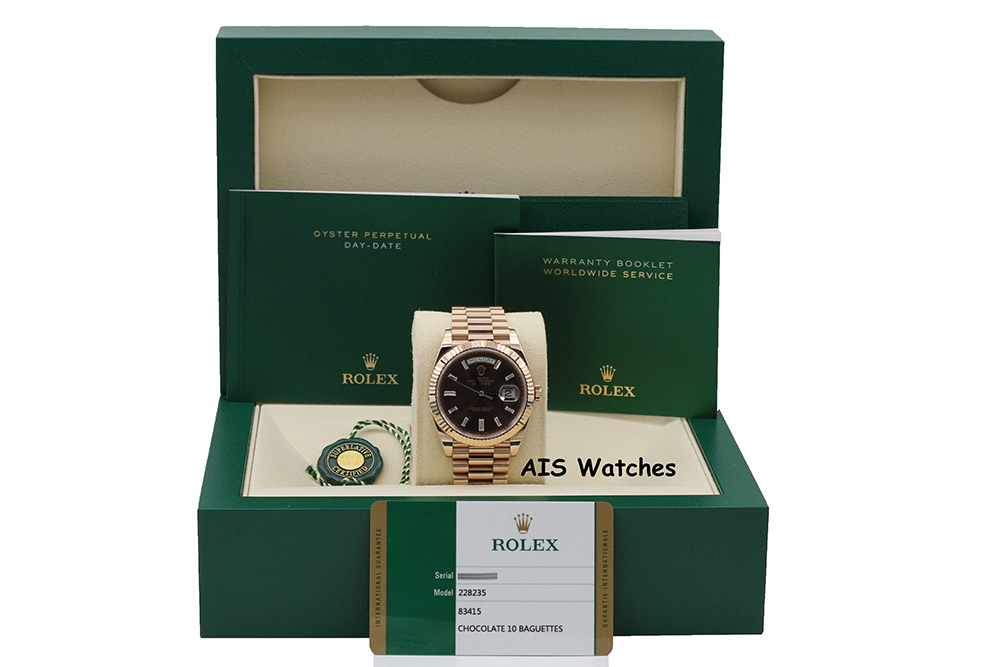 ** Rolex 228235 DayDate 40MM DD40 Rose Gold Chocolate Baguette Diamond Dial