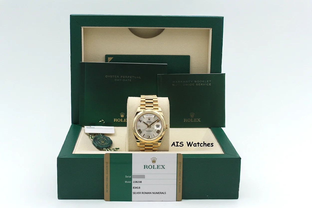 ** Rolex 228238 DayDate 40MM DD40 Yellow Gold Silver Roman Dial