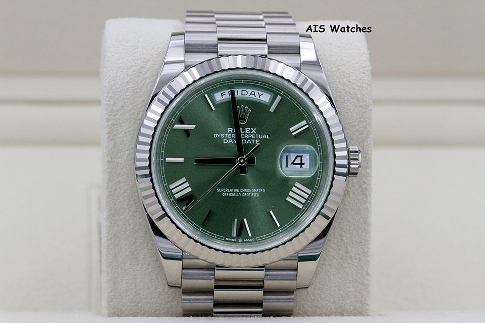 ** Rolex 228239 DayDate 40MM DD40 18K White Gold Olive Green Roman Dial