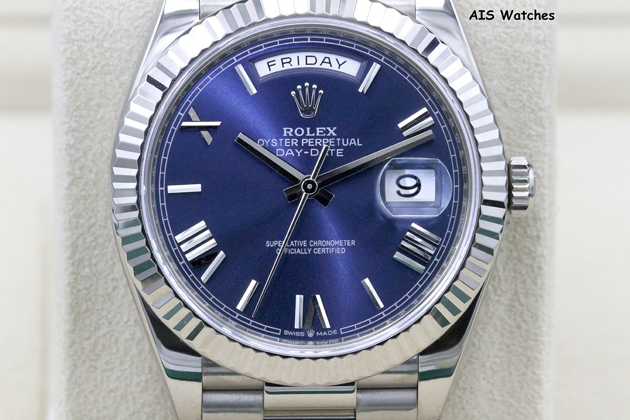 Up for sale is a Rolex 228239 DayDate 40MM DD40 White Gold Blue Roman Dial Box & Papers. The timepiece is in excellent condition