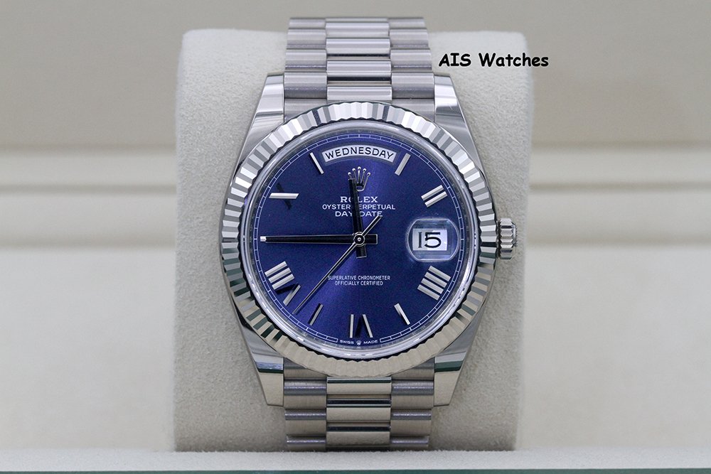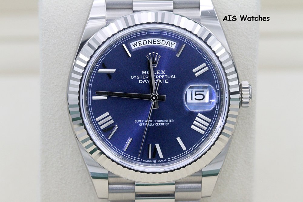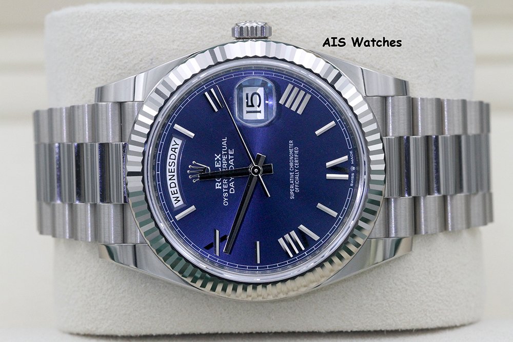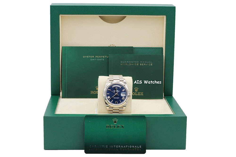 Up for sale is a Rolex 228239 DayDate 40MM DD40 White Gold Blue Roman Dial Box & Papers. The timepiece is in excellent condition