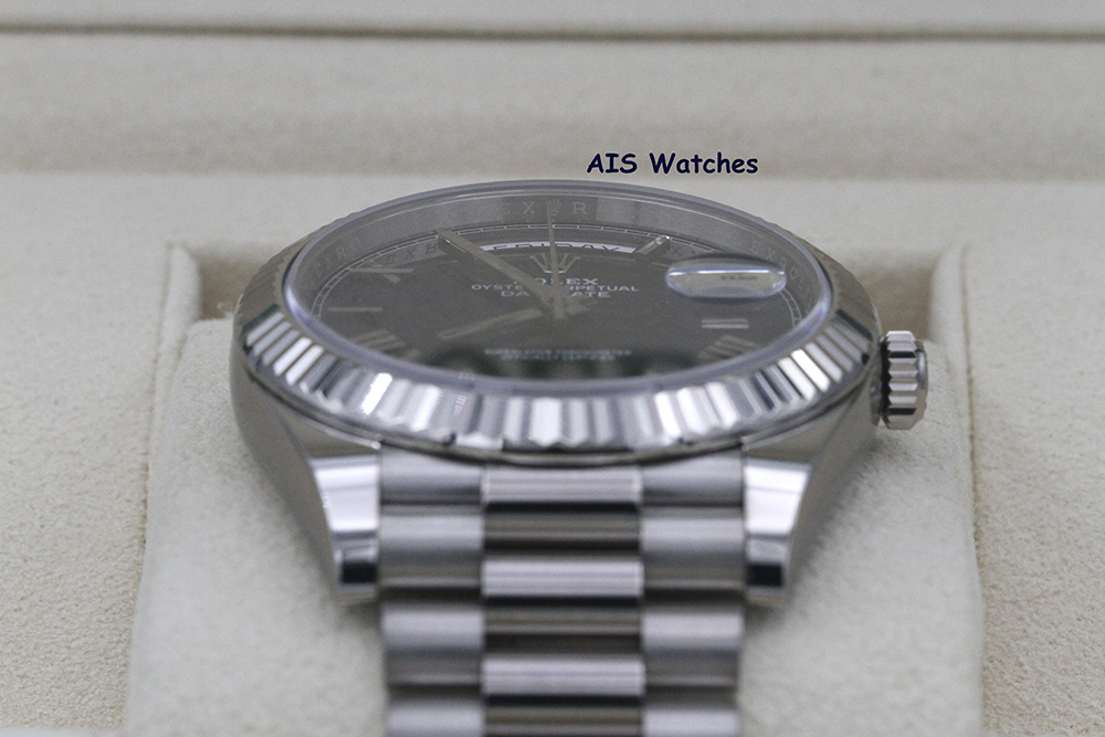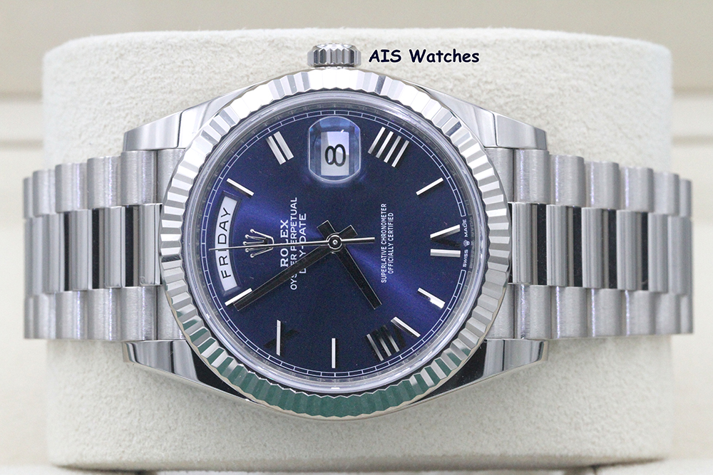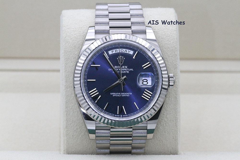Up for sale is a Rolex 228239 DayDate 40MM DD40 White Gold Blue Roman Dial Box & Papers. The timepiece is in excellent condition