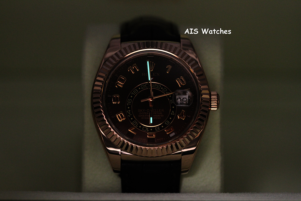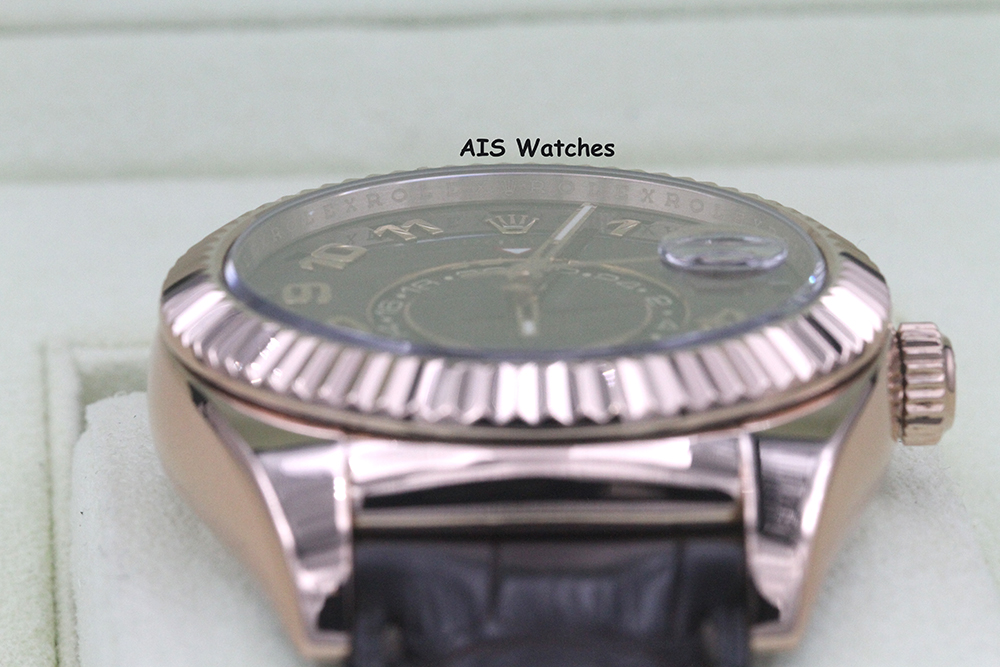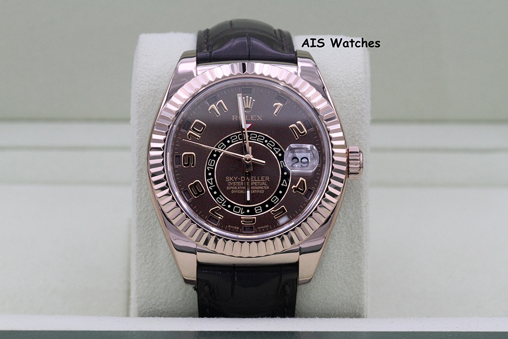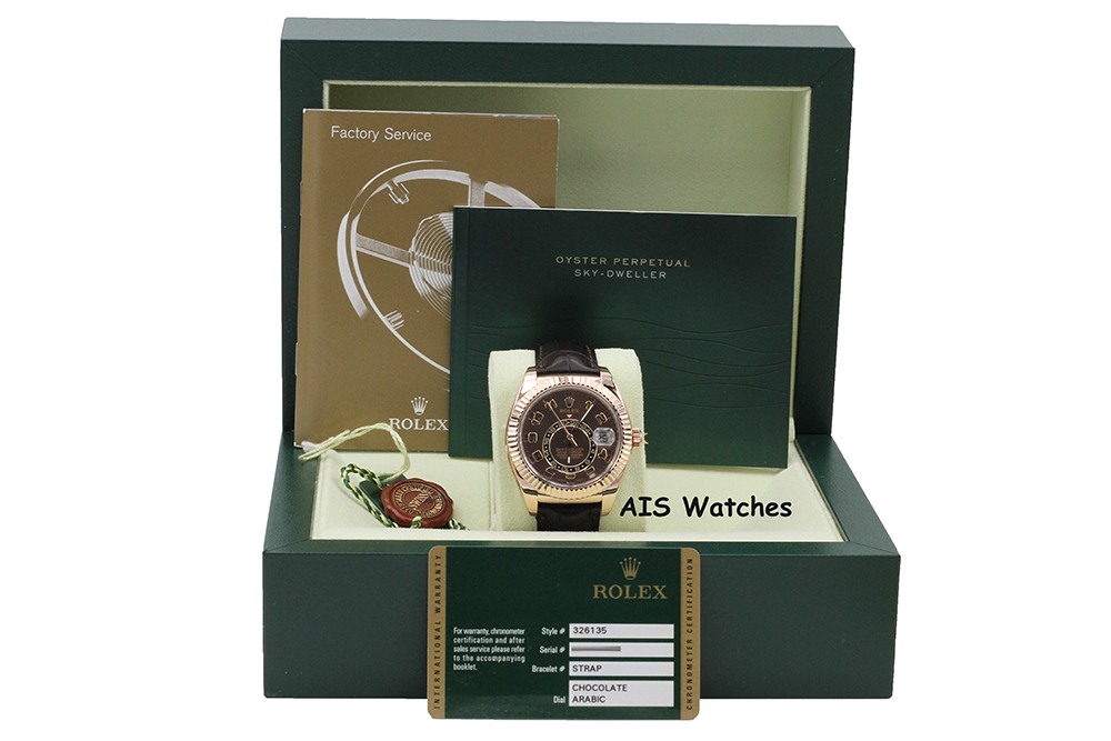 ** Rolex 326135 Sky-Dweller 18K Rose Gold / Leather Strap Chocolate Arabic Dial