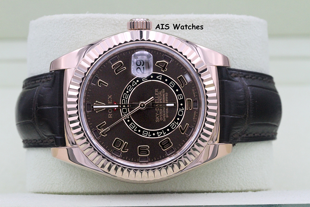 ** Rolex 326135 Sky-Dweller 18K Rose Gold / Leather Strap Chocolate Arabic Dial