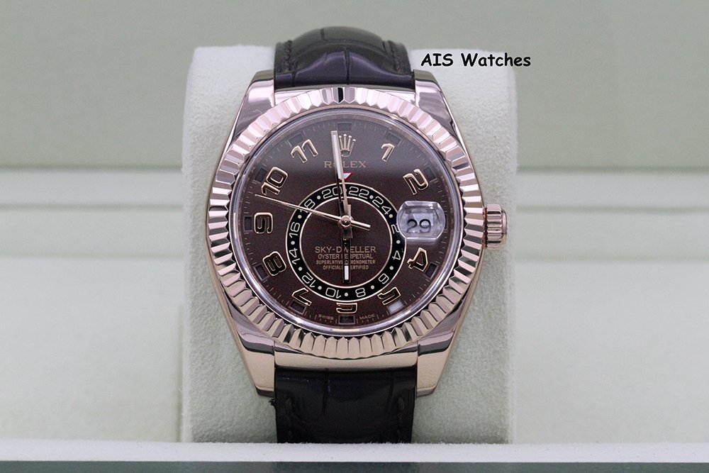 Rolex 326135 Sky-Dweller 18K Rose Gold / Leather Chocolate Arabic Dial B&P