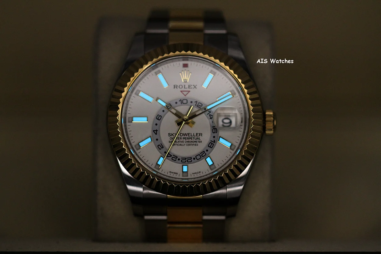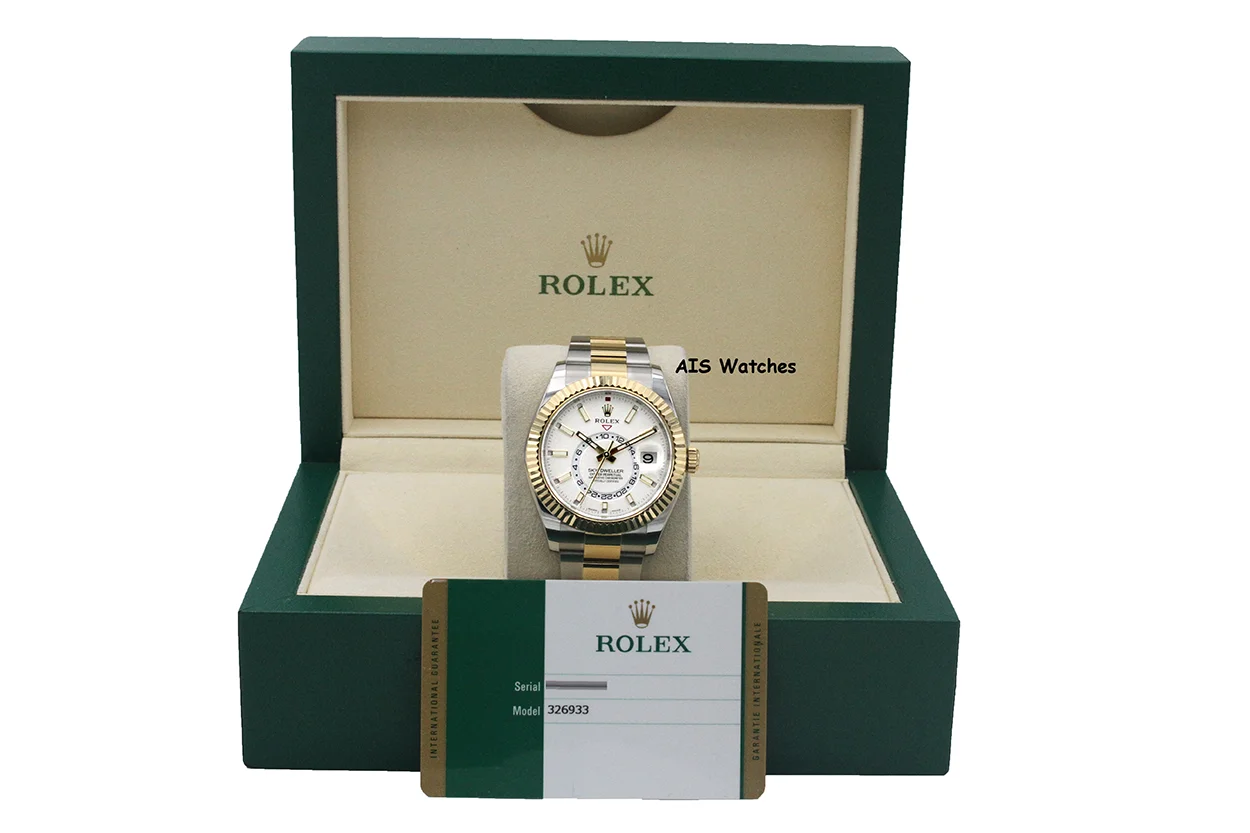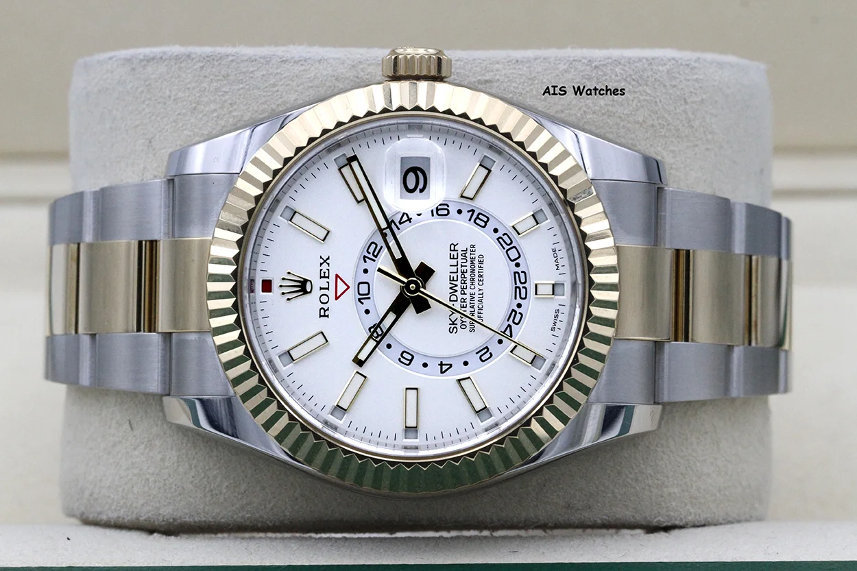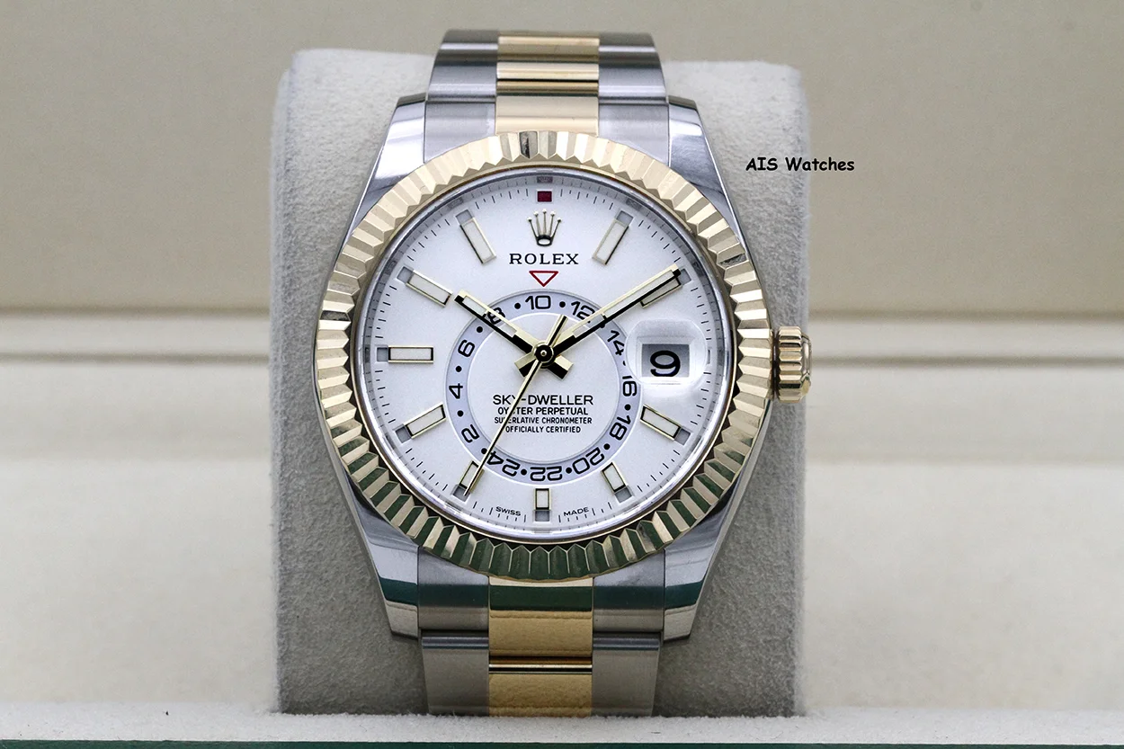 ** Rolex 326933 Sky-Dweller 18K Yellow Gold / SS Oyster White Dial