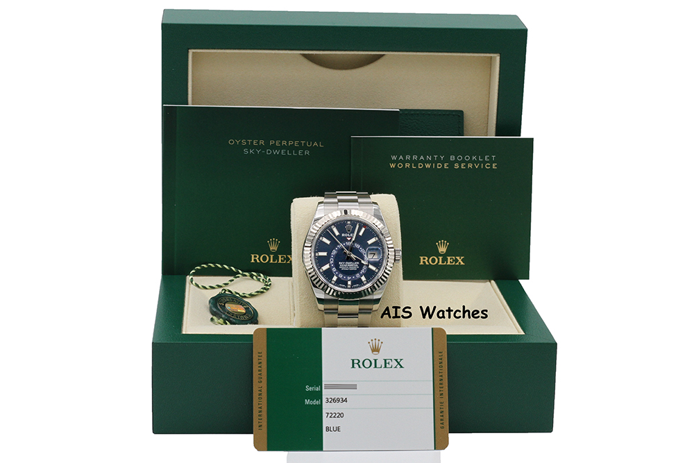 Up for sale is a Rolex 326934 Sky-Dweller Stainless Steel Blue Dial Box & Papers. This timepiece is in excellent condition
