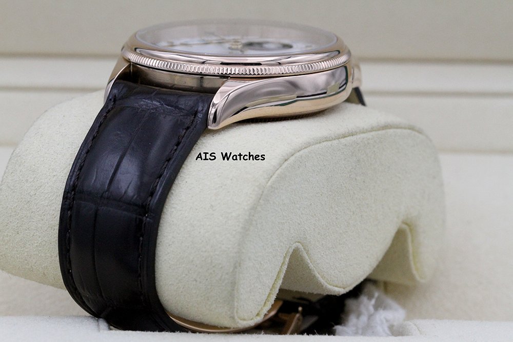 Up for sale is a Discontinued Rolex 50535 Cellini Moonphase 18K Everose Gold 39MM White Lacquer Dial / Rolex Alligator Strap / 18K Rose Gold Deployant Buckle - Box & Papers. The timepiece is in excellent condition.