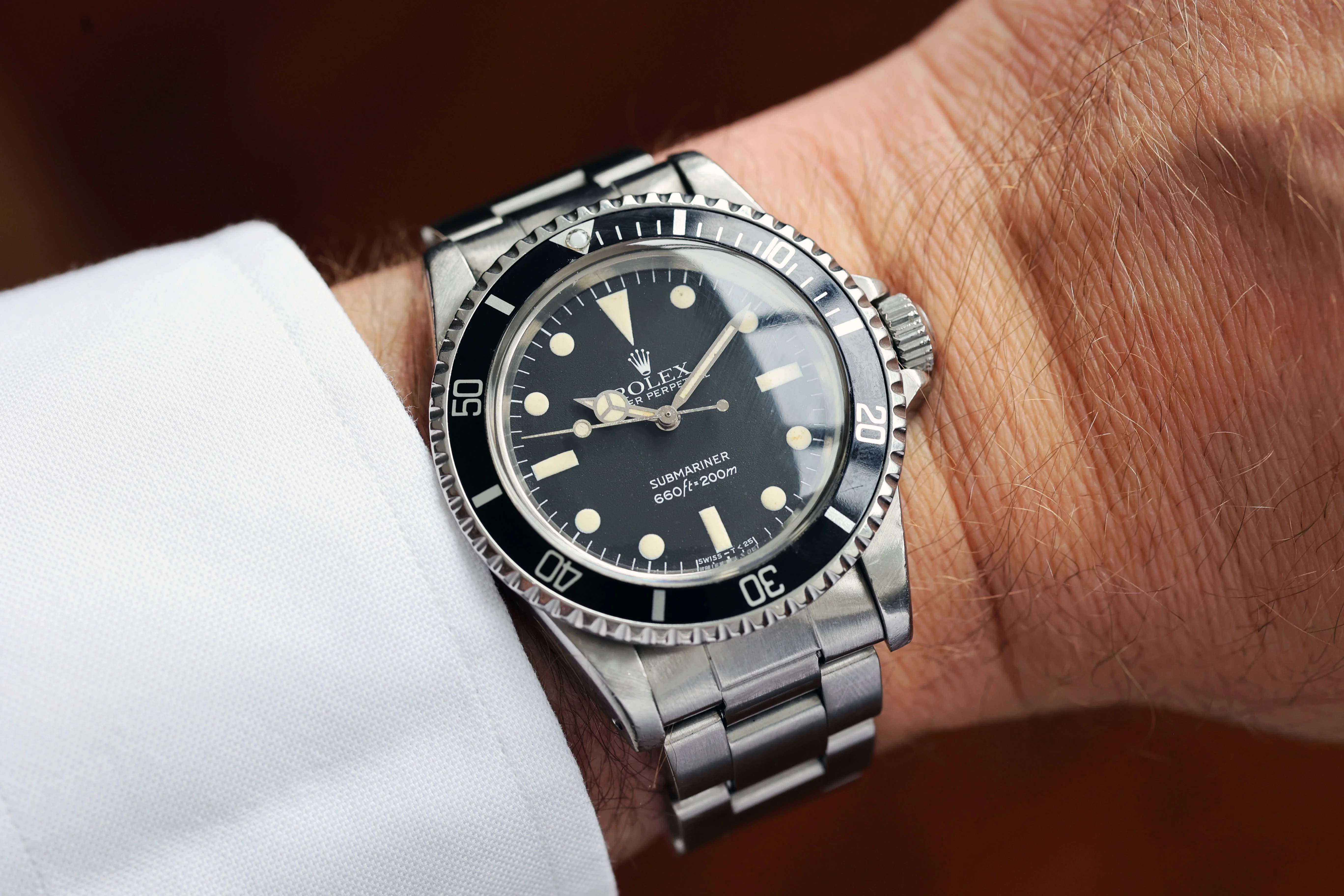 Case: Thick case which has been polished in the past. Bevels can still be seen and crownguards are also fat. Insert is a nice black medium font and insert pearl is luminova.