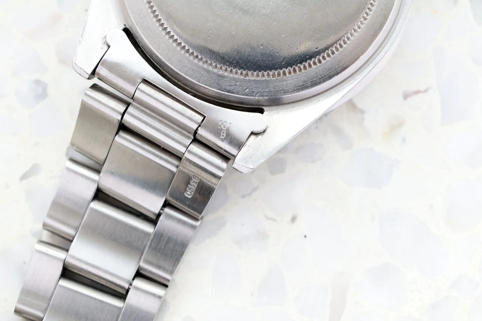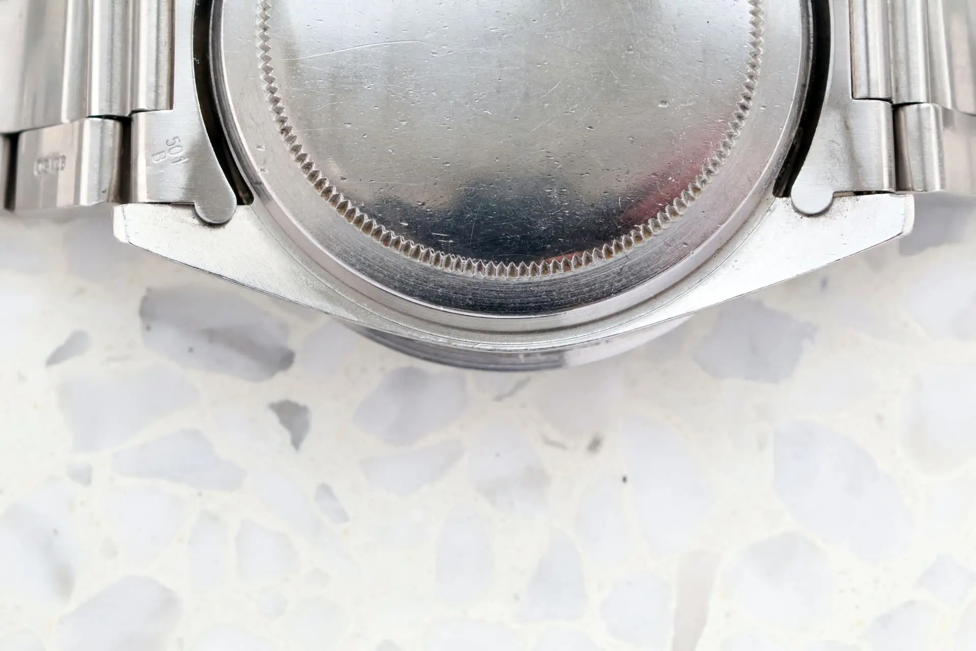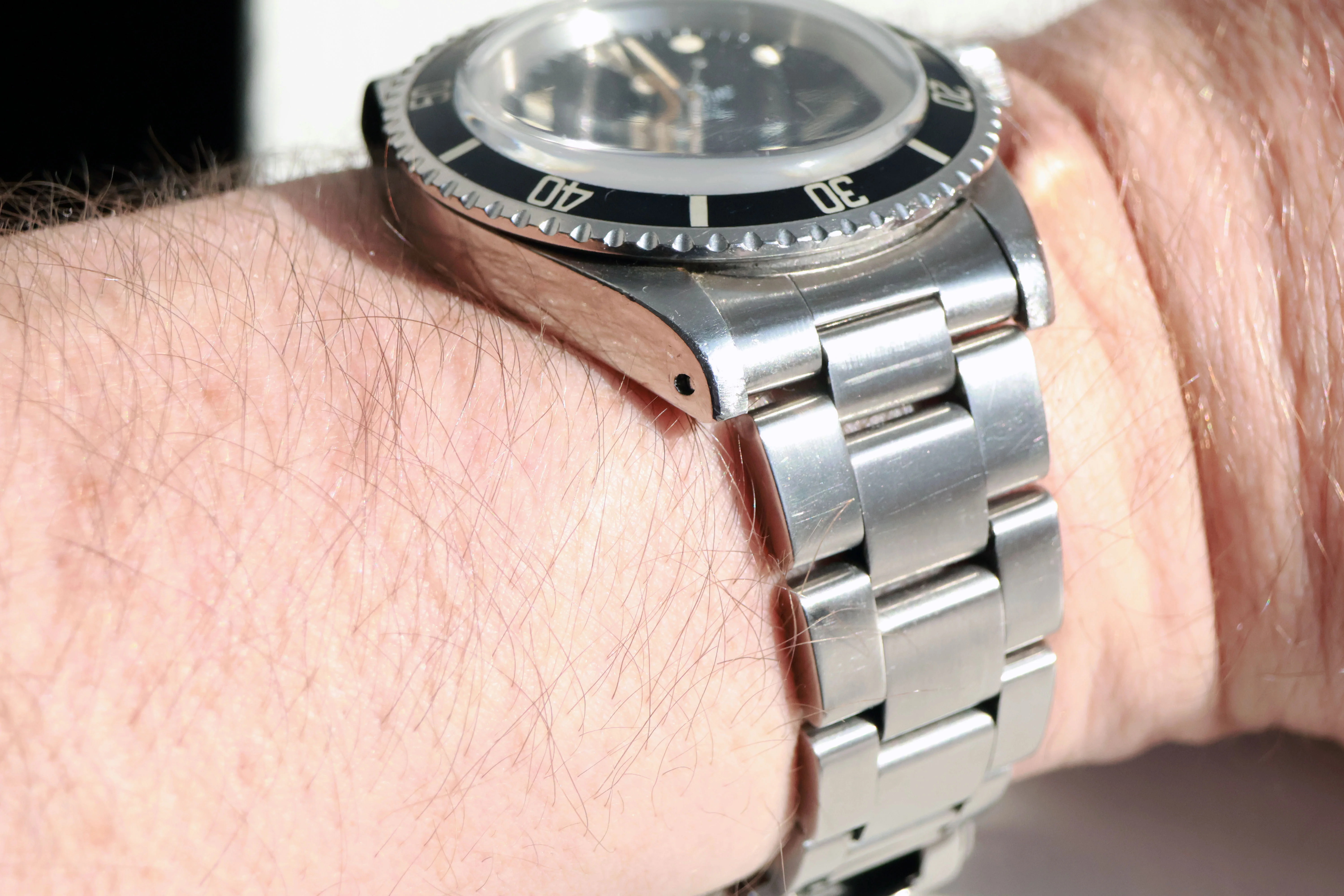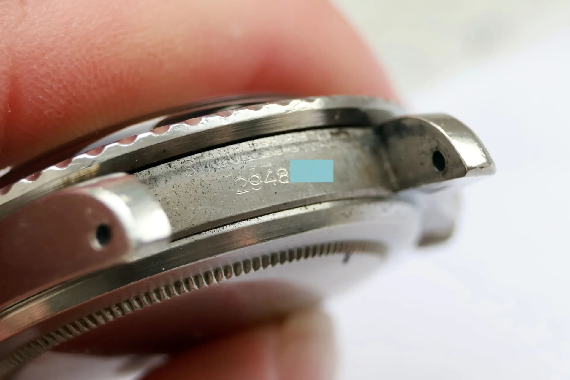 Case: Extremely thick case with all bevels still present. The back of the lugs also retains the “kink” that is typically lost when a watch is polished. The area around the case back remains thick, with no signs of polishing or thinning. I have included some extra detailed photos.