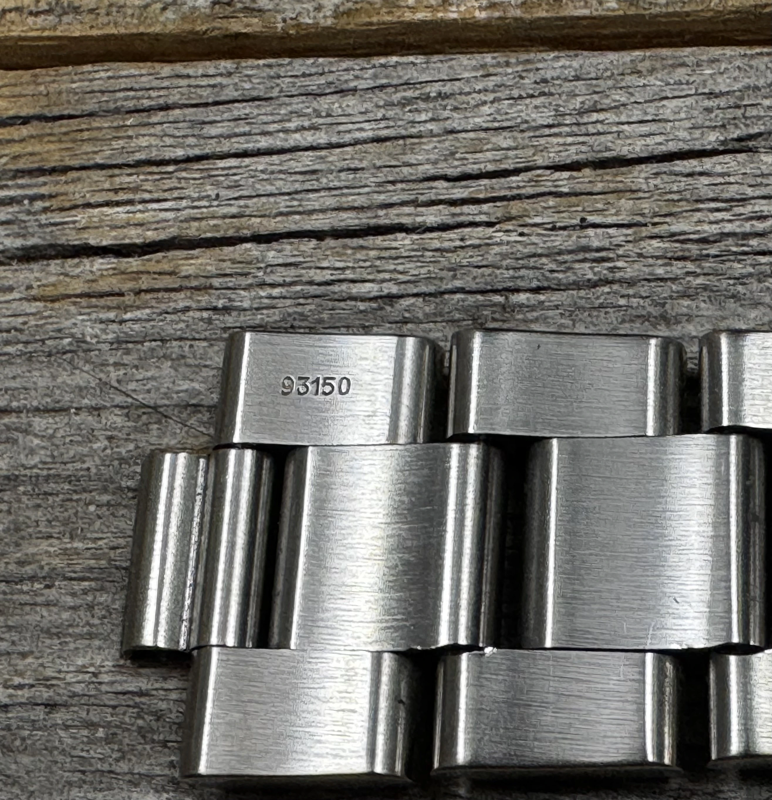 Posts 676 Likes 7,506 Rockmastermike ·May 9, 2025 Old School 93150 oyster bracelet Choice of end links for no-hole lugs or lug hole cases Minimal stretch PJ bracelet code dates this to 2008 11 links Asking $900 OBO